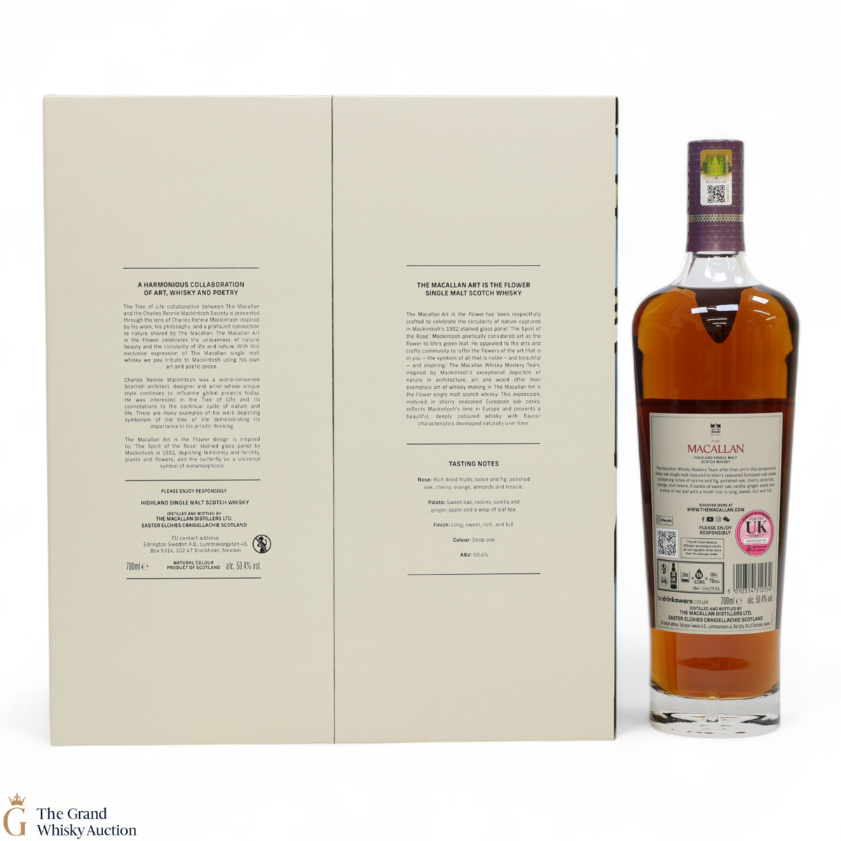 Inspired by Mackintosh's exceptional depiction of nature in architecture, art and design, The Macallan Whisky Mastery Team's exemplary art of whisky making is expressed in The Macallan Art is the Flower single malt scotch whisky.