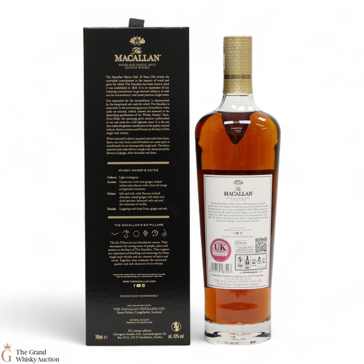 This annual release of The Macallan's popular 18-year-old Sherry Oak is matured exclusively in sherry-seasoned casks, built from both Spanish and American oak, providing a beautifully dark flavour with rich aromas.
