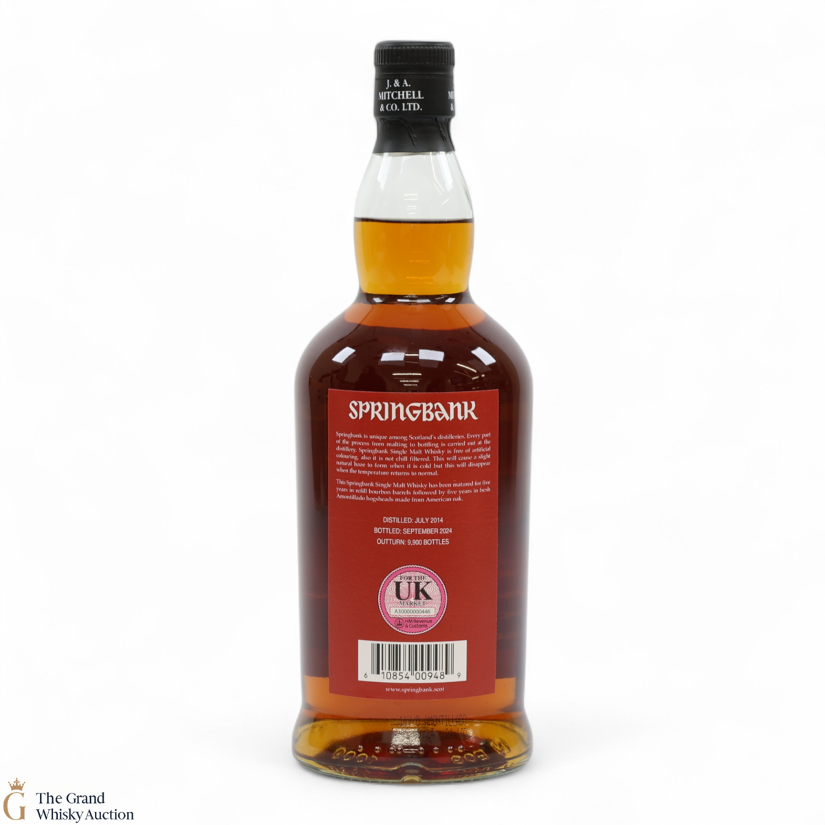 This Springbank Single Malt Whisky was distilled in July 2014 and has been matured for five years in refill bourbon barrels followed by four years in fresh amontillado hogsheads made from American oak. It was then bottled in September 2024 at a strength of 55% ABV with an outturn of 9,900 bottles.