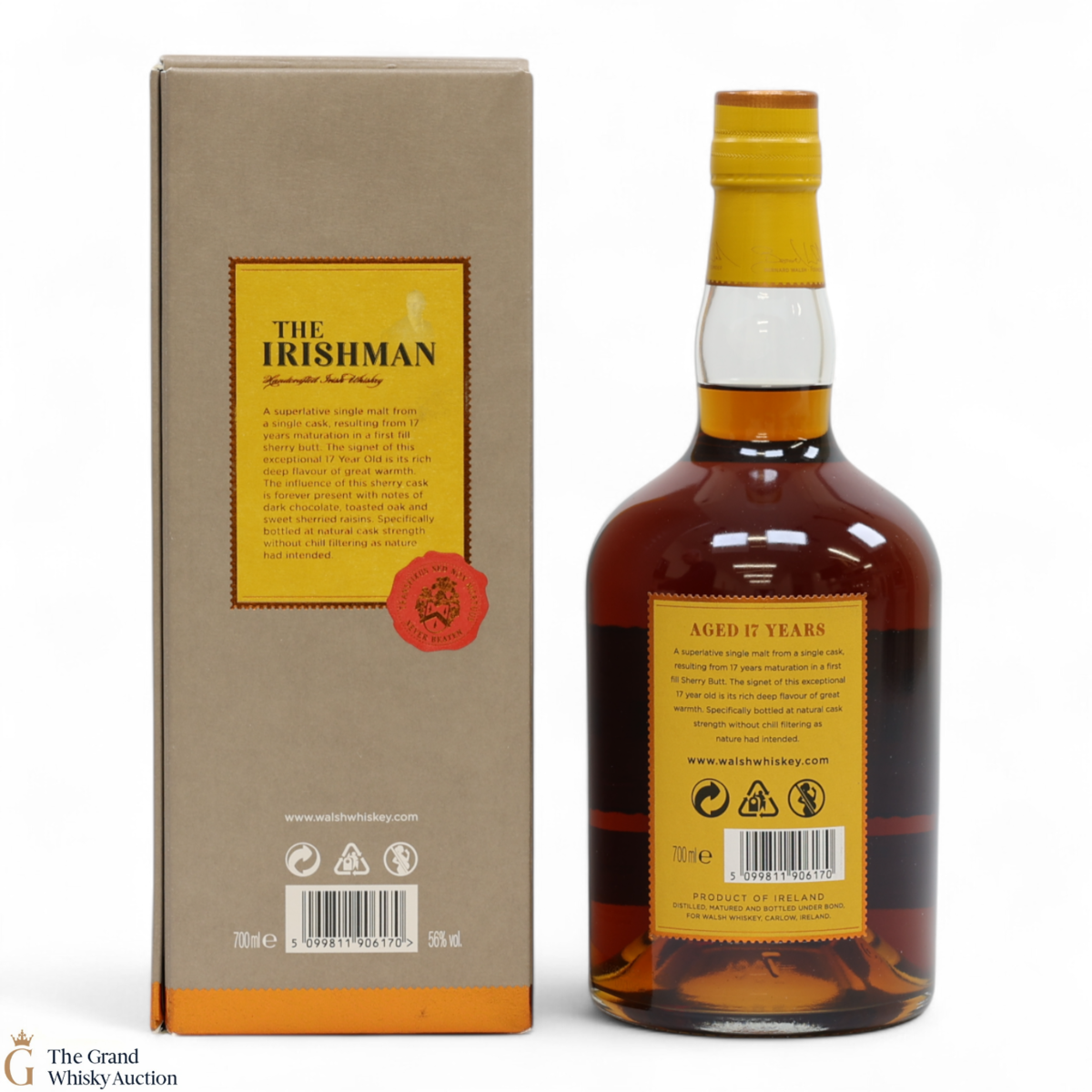 A Single Malt Irish whiskey that has been triple distilled and bottled by Walsh Whiskey Distillery Ltd.