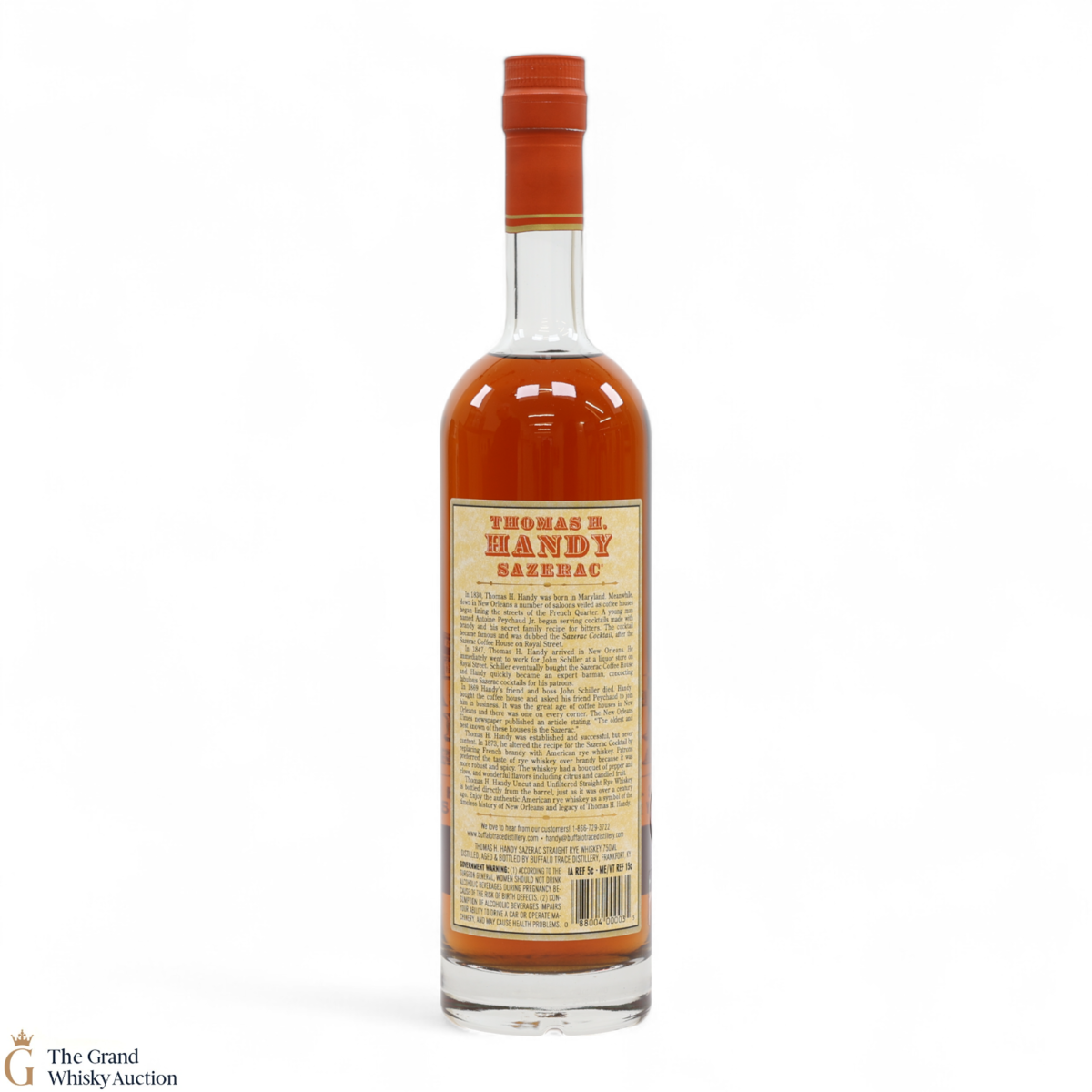This collection is dubbed the antique collection and celebrates famous figures. The companies founder, Thomas H. Handy, is on the front of this bottle with the picture of the Sazerac Coffee House where everything started.