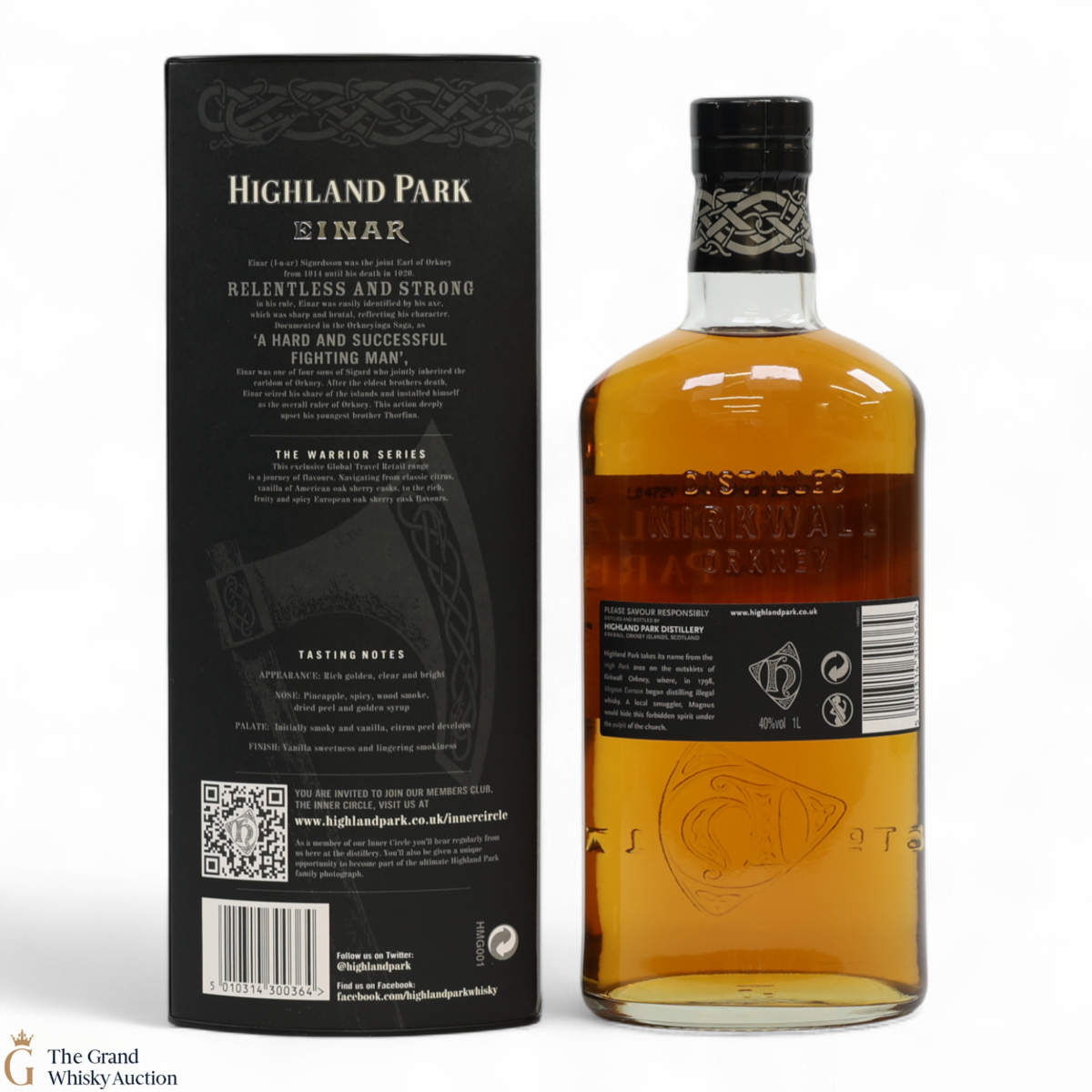 Einar is from Highland Park's travel retail Warrior series. It is named after Einar Sigurdsson who is documented in the Orkneyinga Saga as 'hard and successful man' that once ruled Orkney, where the Highland Park distillery resides. This single malt has been matured in Sherry seasoned American and European oak casks. Warm flavours of zesty dried orange peel and vanilla pods sweetly unfold in each dram of Einar.