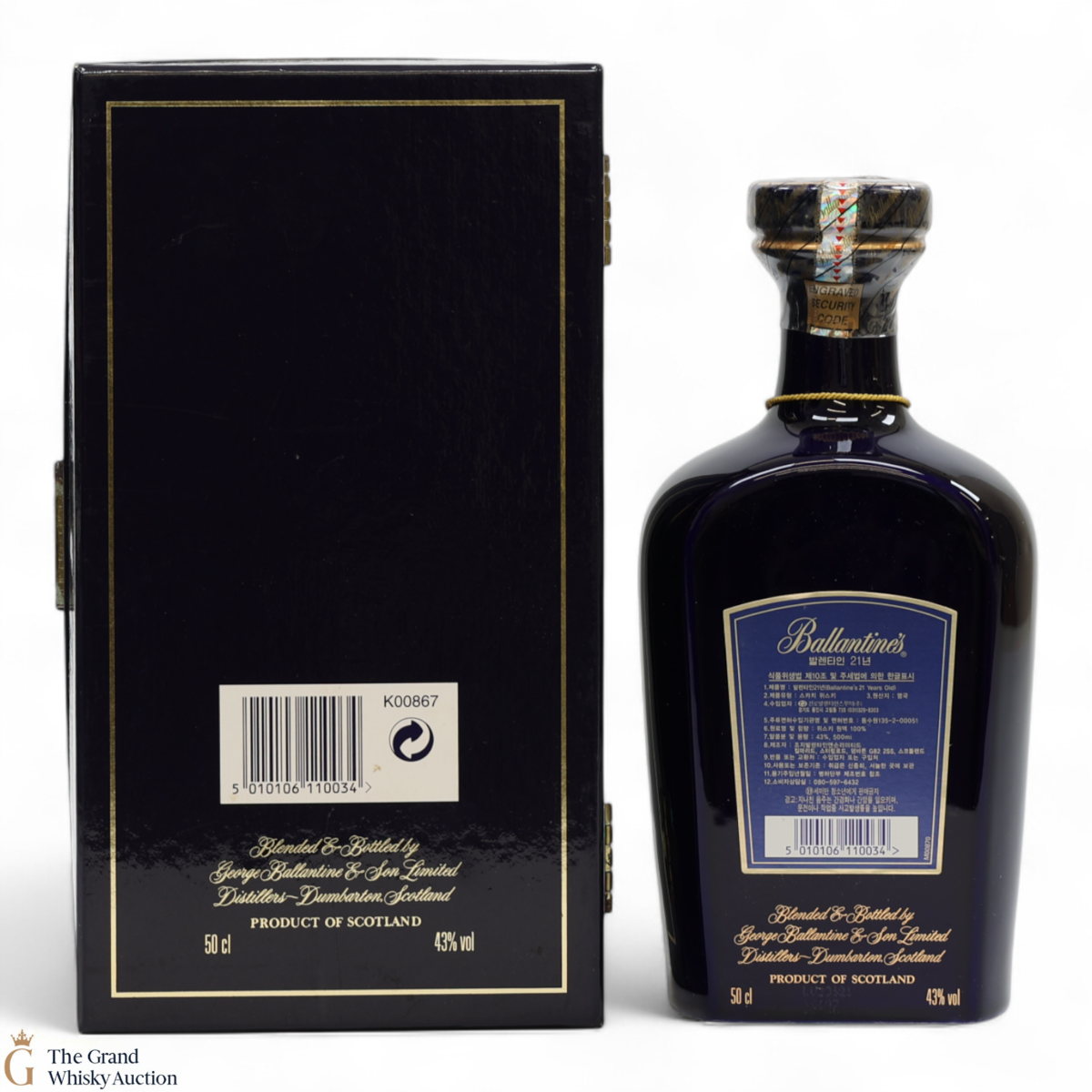 A 21-year-old blended scotch from Ballantine’s: sophisticated, well-balanced and exceptionally aromatic.