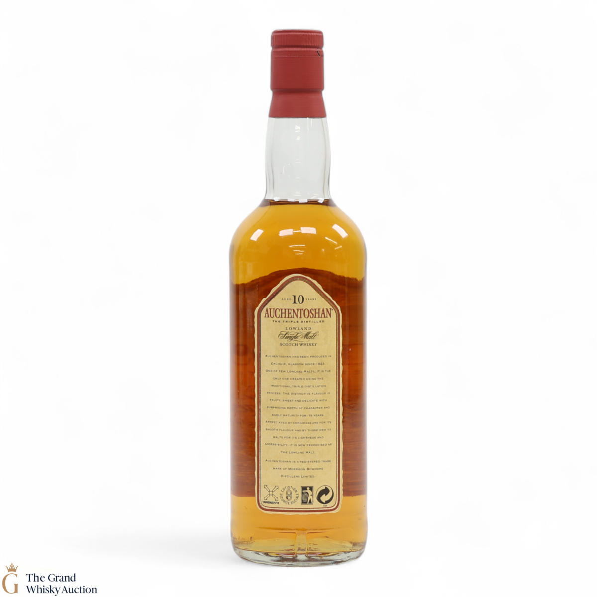 This is an older style of 10 year old Lowland single malt distilled at Auchentoshan was bottled in the 1980s. It was triple-distilled and aged in oak casks. This is a 70cl bottling.