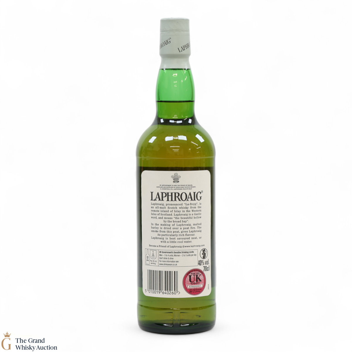 A 70cl of the medicinal 10 year old from Islay's bestselling distillery, Laphroaig. In making Laphroaig, malted barley is dried over a peat fire. The smoke from this peat, found only on Islay, gives Laphroaig its particularly rich flavour.