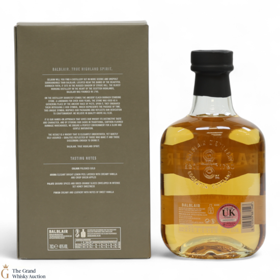 A 12-Year-Old Balbalir single malt. Balblair distillery was built in 1790 by the Ross family and in 1872 they moved to a new site in order to make use of the newly built railway between Wick and Inverness.