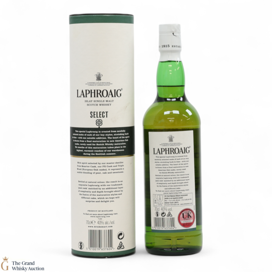 Laphroaig Select has been created using a combination of whisky from a number of different types of casks, including Oloroso Sherry butts, white American oak, Pedro Ximenez seasoned hogsheads, quarter casks and first-fill bourbon casks.