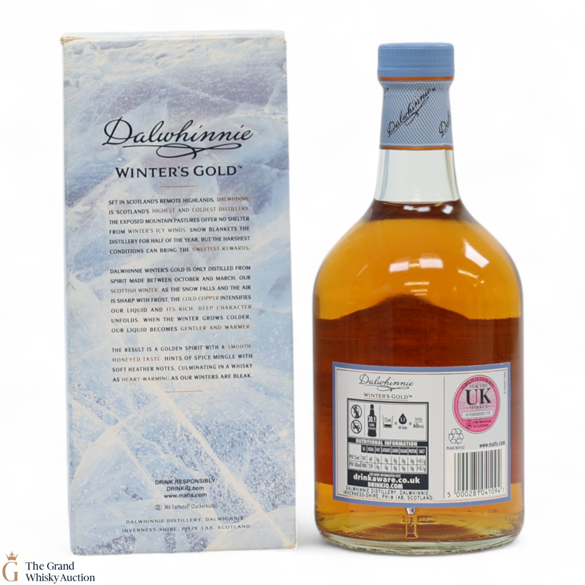 Dalwhinnie Winter's Gold was introduced in 2015 inspired by its location in the Highlands of Scotland, making it one of the highest and coldest distilleries - "Crafted by the Cold". It is made exclusively with the spirit that has been distilled between October and March.