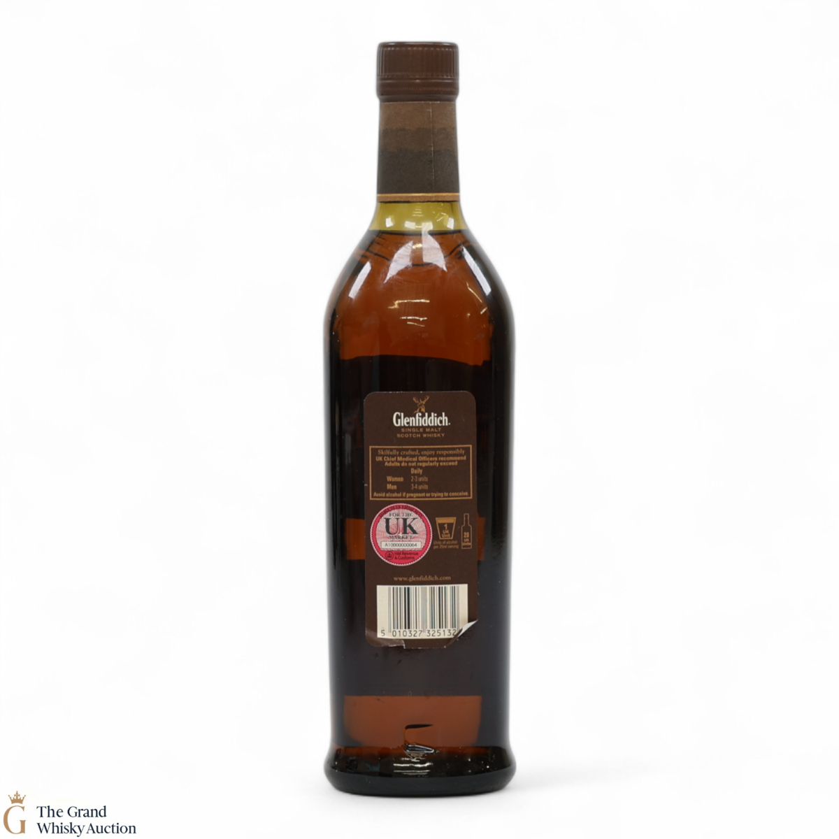 Matured in small batches the Glenfiddich 18 is arguably the most complex in the core range. The single malt has been matured in oloroso sherry and bourbon casks. It is very fragrant with tropical fruit and sherry cask influences, rich baked apple and cinnamon spice compliments by robust oak notes.