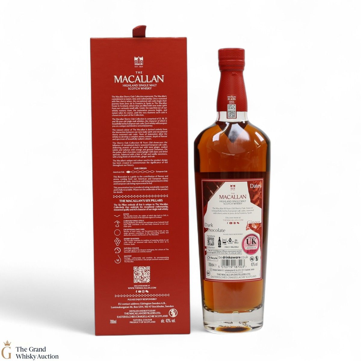 This annual release of The Macallan's popular 18-year-old Sherry Oak is matured predominantly sherry seasoned European oak casks from Jerez, Spain. There will be a small amount of American Oak Casks in this release also.