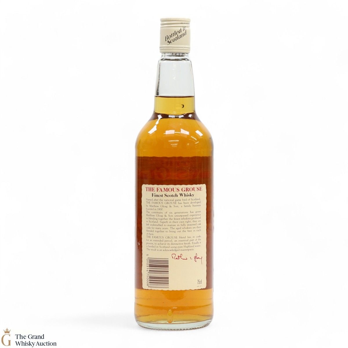 Famous Grouse blended scotch whisky was first produced by Matthew Gloag & Son Ltd in 1896, and is currently produced and owned by The Edrington Group.