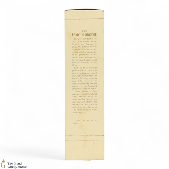 Famous Grouse blended scotch whisky was first produced by Matthew Gloag & Son Ltd in 1896, and is currently produced and owned by The Edrington Group.