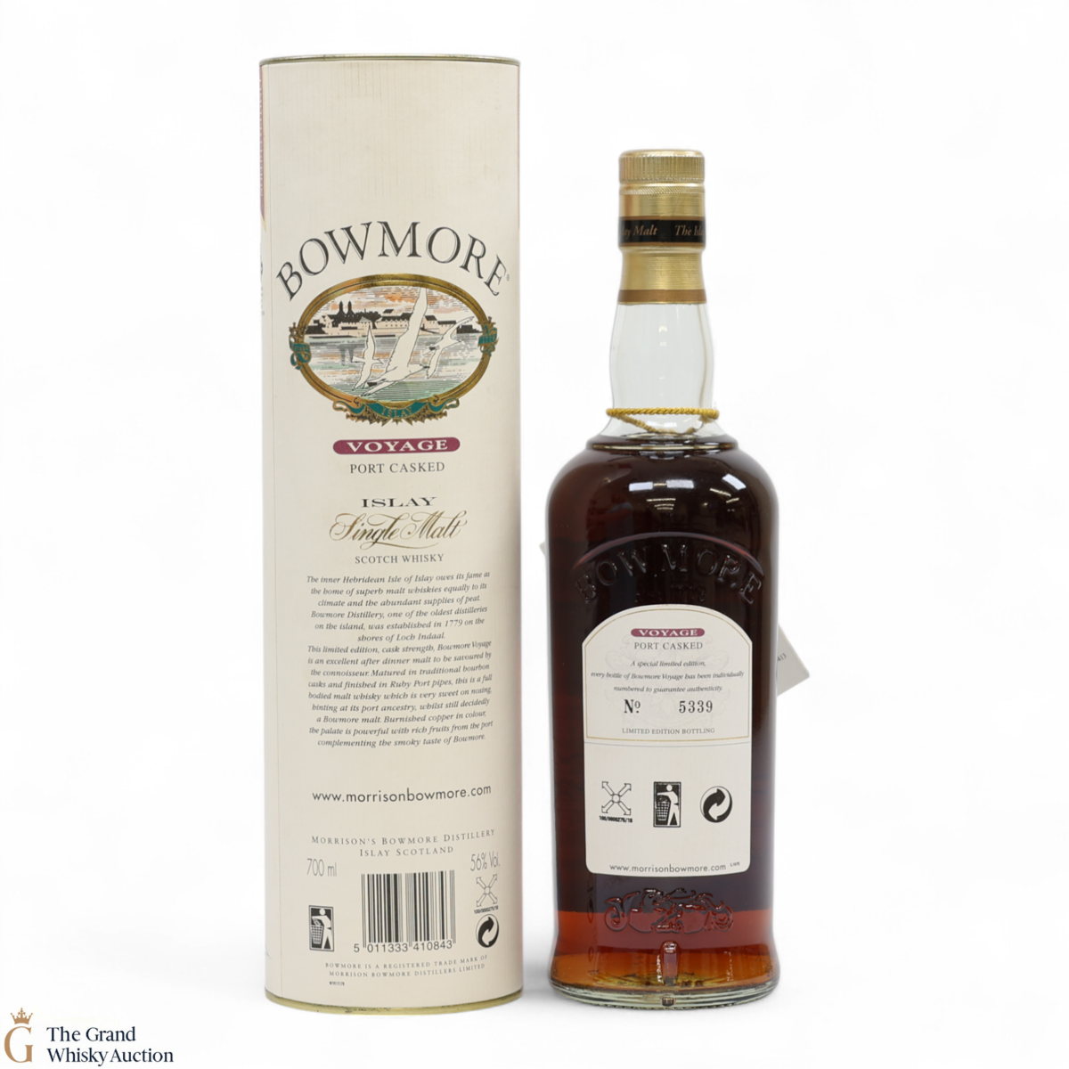 The Bowmore voyage is a non-aged statement Bowmore matured in bourbon casks before being finished in port pipes. Released in 2000 and individually numbered.
