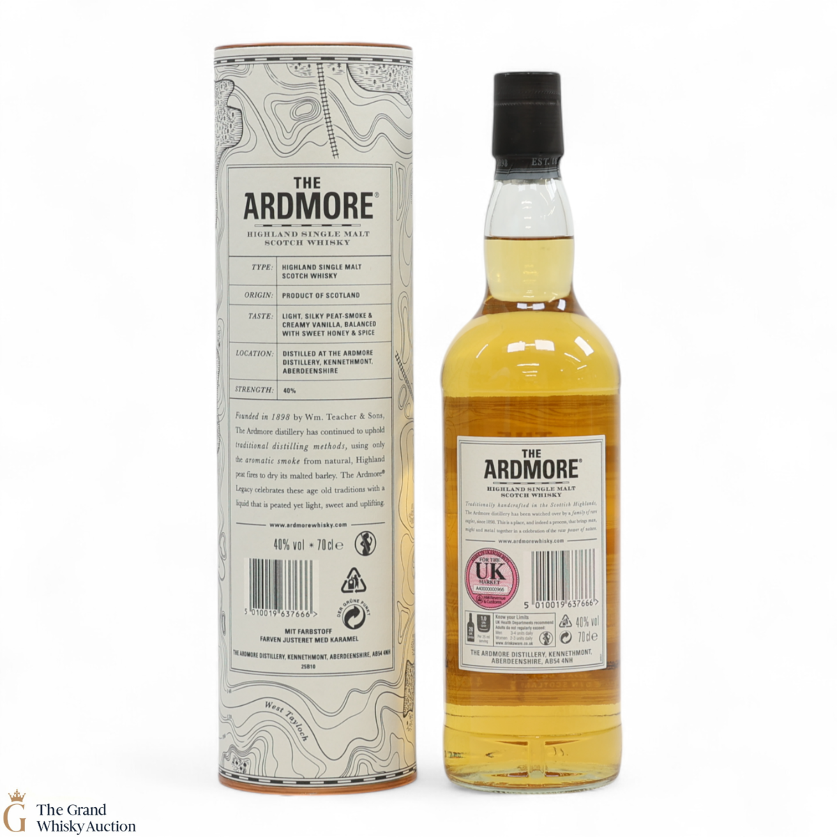 Ardmore Legacy was launched in 2014 to replace Ardmore Traditional. Ardmore Legacy is made with 80% peated and 20% unpeated malt.