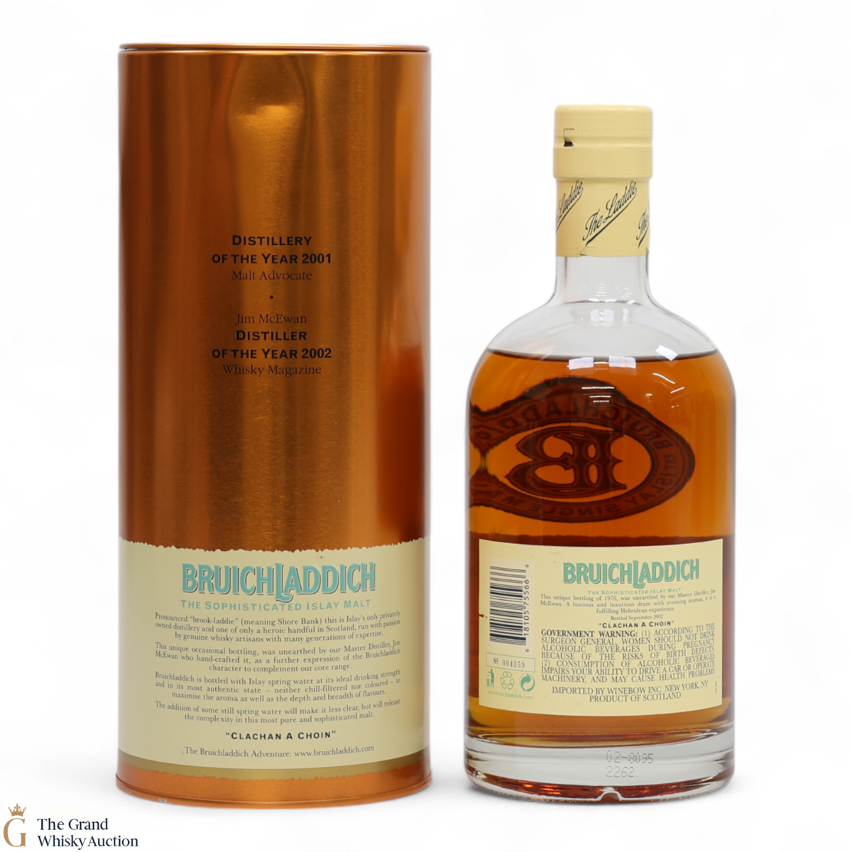 Due to the various ages of bottles and their seals, the condition of liquid is at the buyer's discretion and no claim can be lodged against failure/leakage in transit. Loss and breakage cover is available at 3% of the hammer price as standard. If the lot is not insured, no claim can be lodged against the courier or The Grand Whisky Auction for breakage or loss in transit.