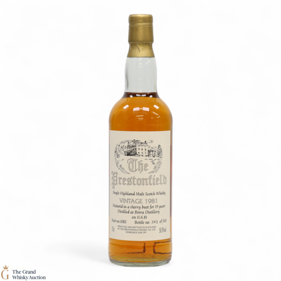 A 1981 Brora bottled for The Prestonfield hotel in Edinburgh by Signatory. The hotel really knows their whiskies and this is more evidence - a single cask bottled at cask strength after 19 years maturing in a sherry butt #1083.