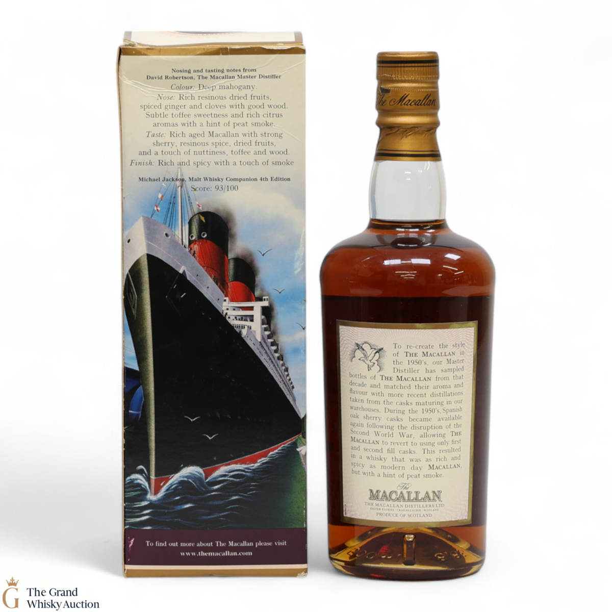 During the 1950s, Macallan whisky was as rich and spicy as modern-day Macallan, but with a hint of peat smoke. This was due to Spanish oak sherry casks becoming available again, following the disruption of the second world war. Macallan was ale to revert to using only first and second fill casks. 50cl, 40%.