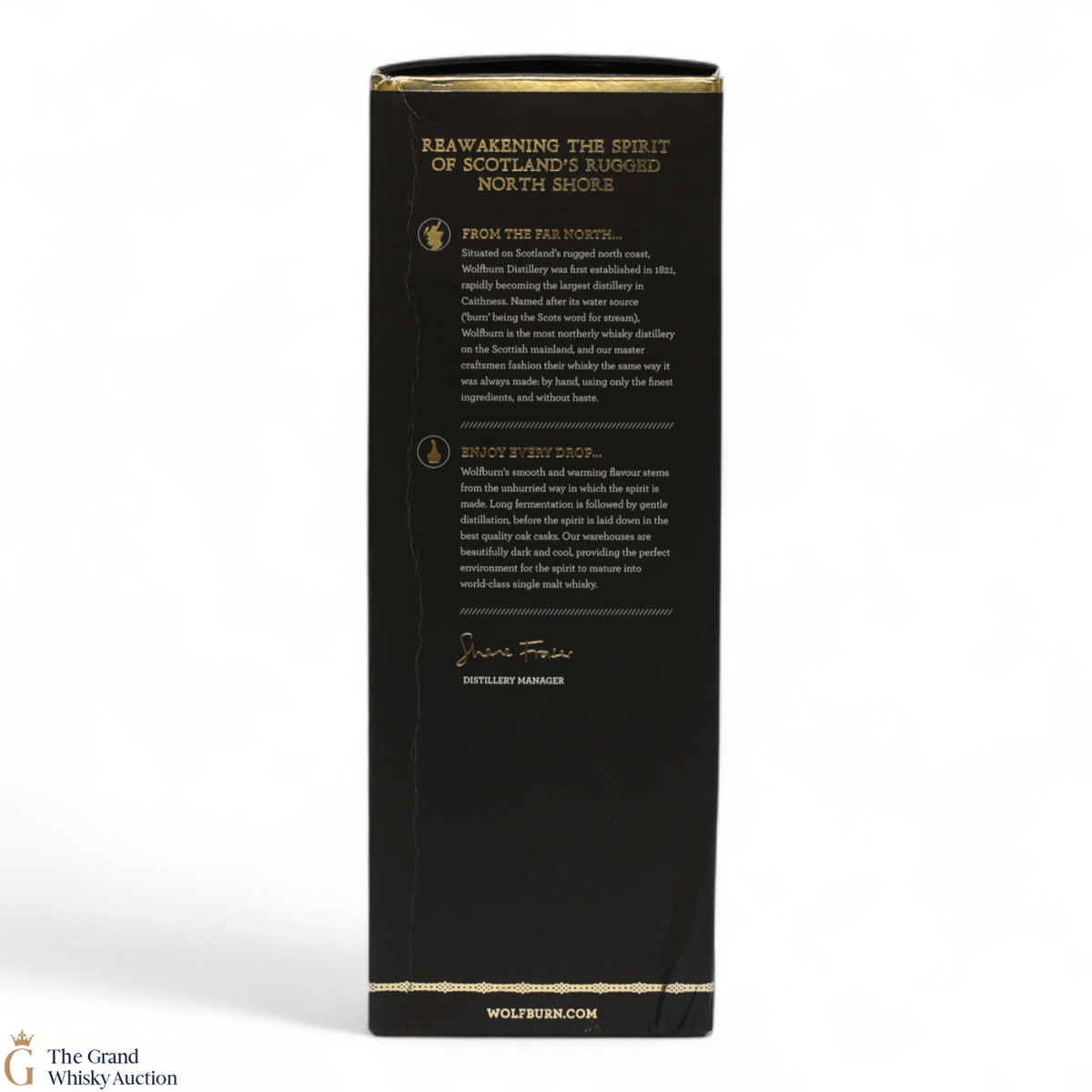 Due to the various ages of bottles and their seals, the condition of liquid is at the buyer's discretion and no claim can be lodged against failure/leakage in transit. Loss and breakage cover is available at 3% of the hammer price as standard. If the lot is not insured, no claim can be lodged against the courier or The Grand Whisky Auction for breakage or loss in transit.