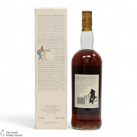 This is a 1-liter bottling of 12-year-old single malt from Macallan, bottled in the 1990s. Very collectible indeed.