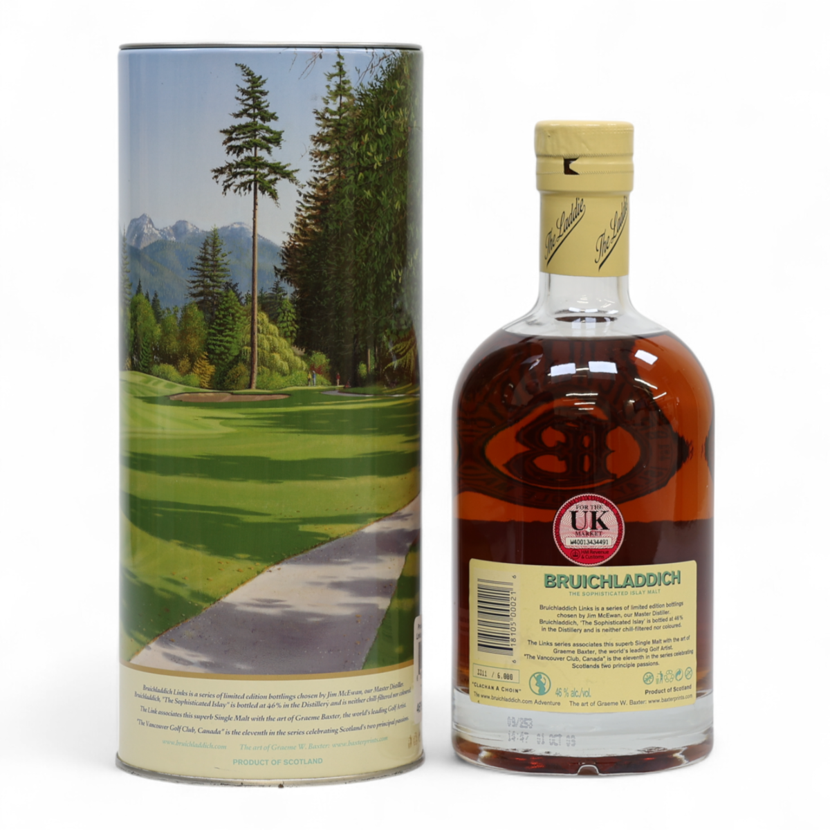The Bruichladdich Links collection was created in partnership with Graeme Baxter, a famous world-leading Golf Course artist. It is a series of releases, each featuring a different golf course.