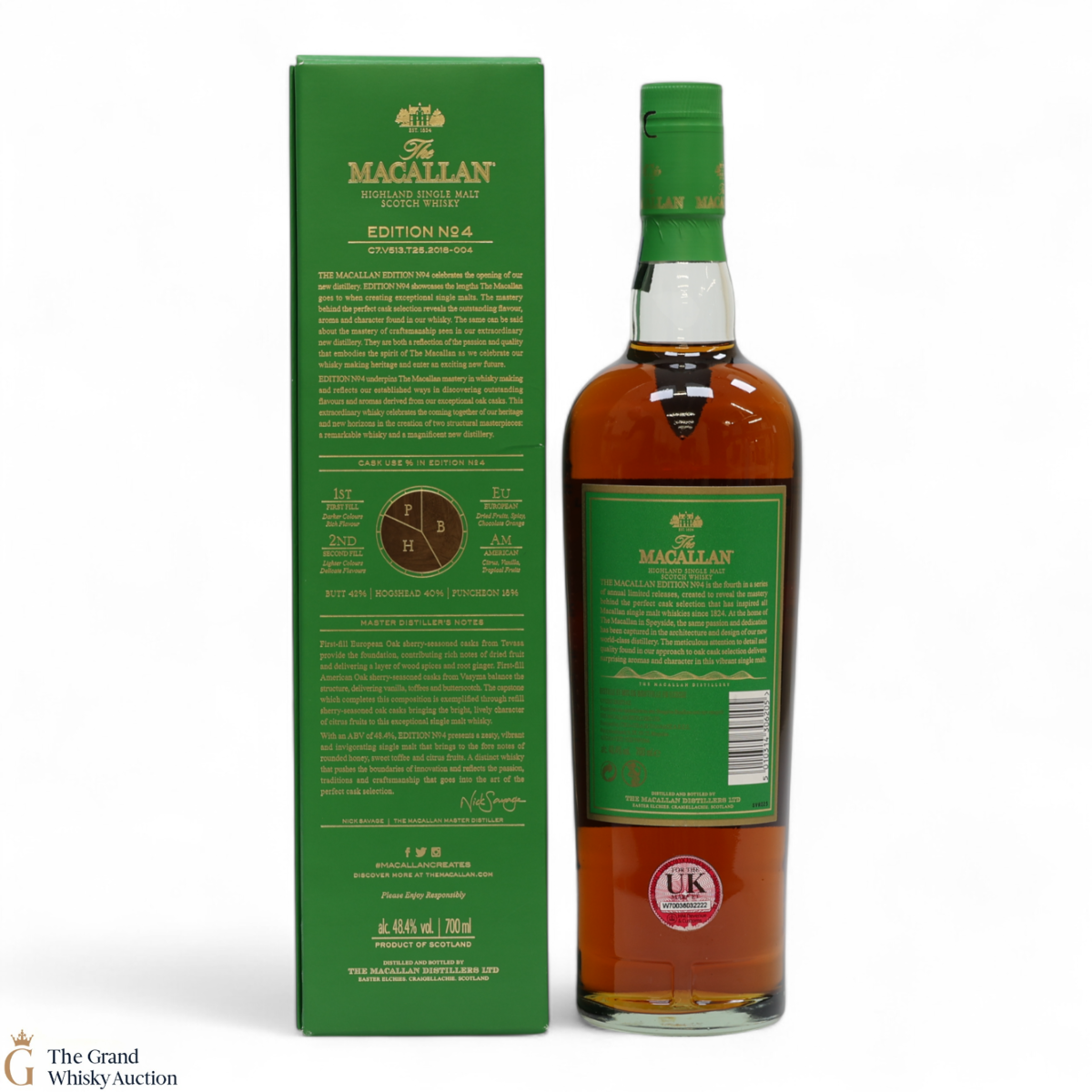 The fourth release in the Edition Series from The Macallan, this Speyside single malt is a celebration of the distillery's whisky making heritage, combining a unique selection of oak cask styles. Edition No.4 reflects the craftsmanship and pioneering design of the new Macallan distillery.