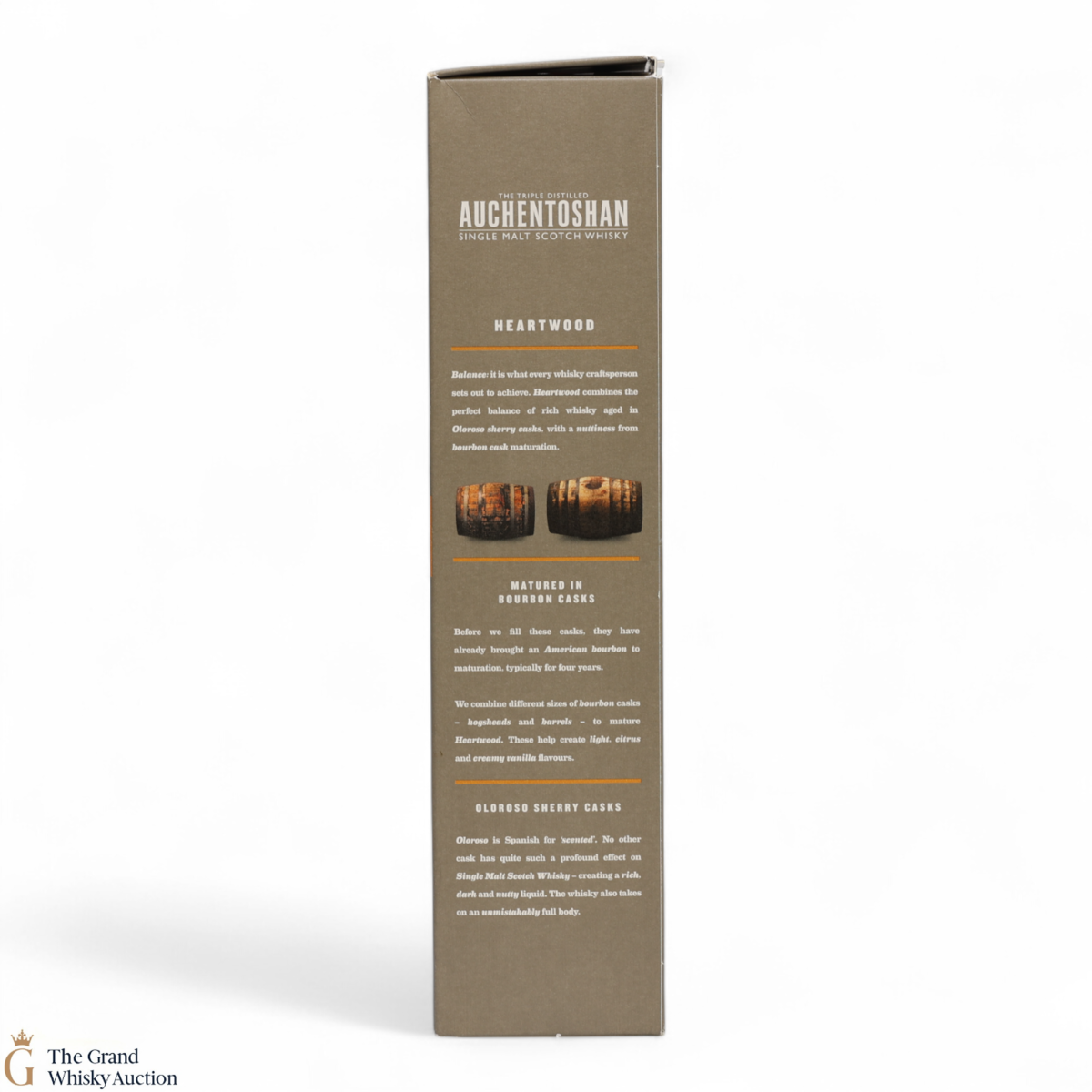 Auchentoshan Heartwood was released for travel retail, made with triple distilled single malt Scotch whisky, matured in both Oloroso Sherry casks and bourbon casks.