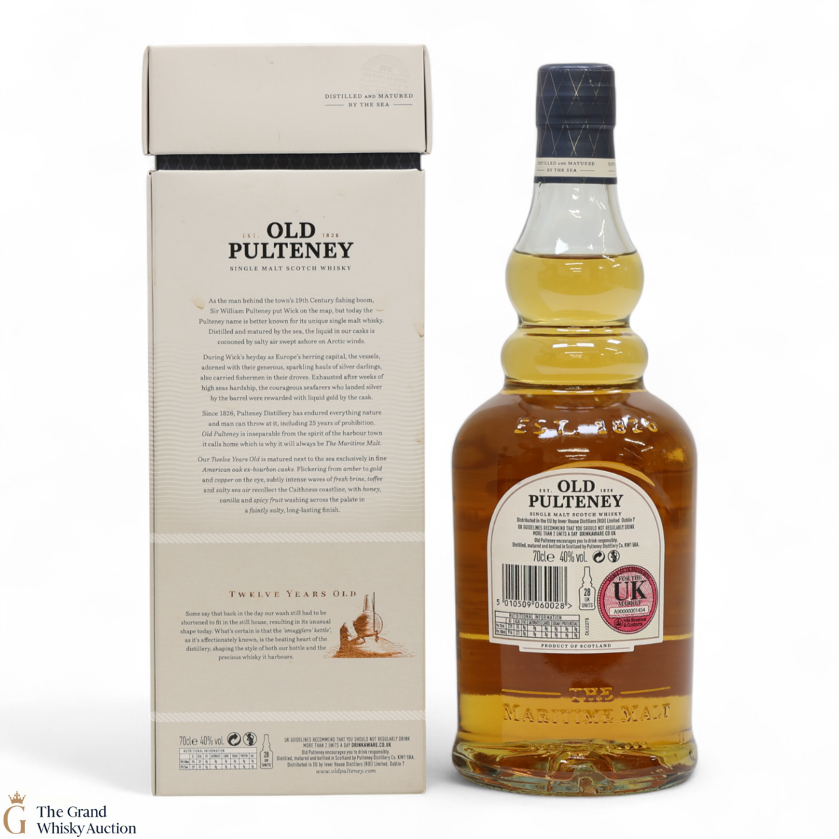 Old Pulteney is known as the Maritime Malt due to the distillery's location in the very North of Scotland and this is honoured with the unique shape of the bottle.