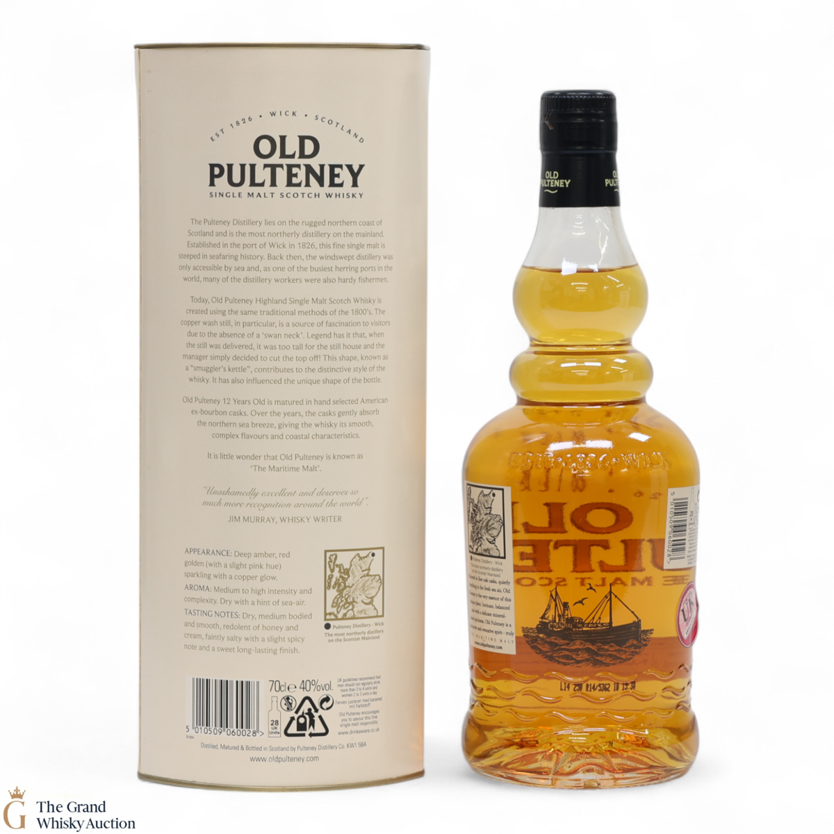 Old Pulteney is known as the Maritime Malt due to the distillery's location in the very North of Scotland and this is honoured with the unique shape of the bottle.