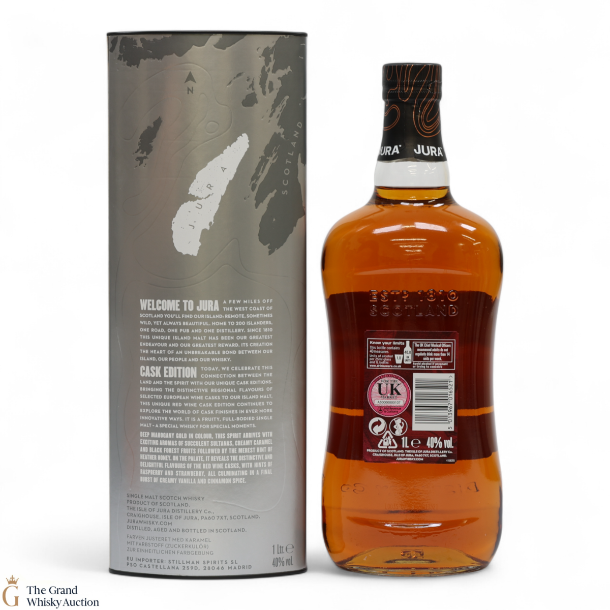 Jura Cask Editions celebrate flavours of selected European wine with the island malt and this unique red wine cask edition continues to explore the world of cask finishes in ever more innovative ways.