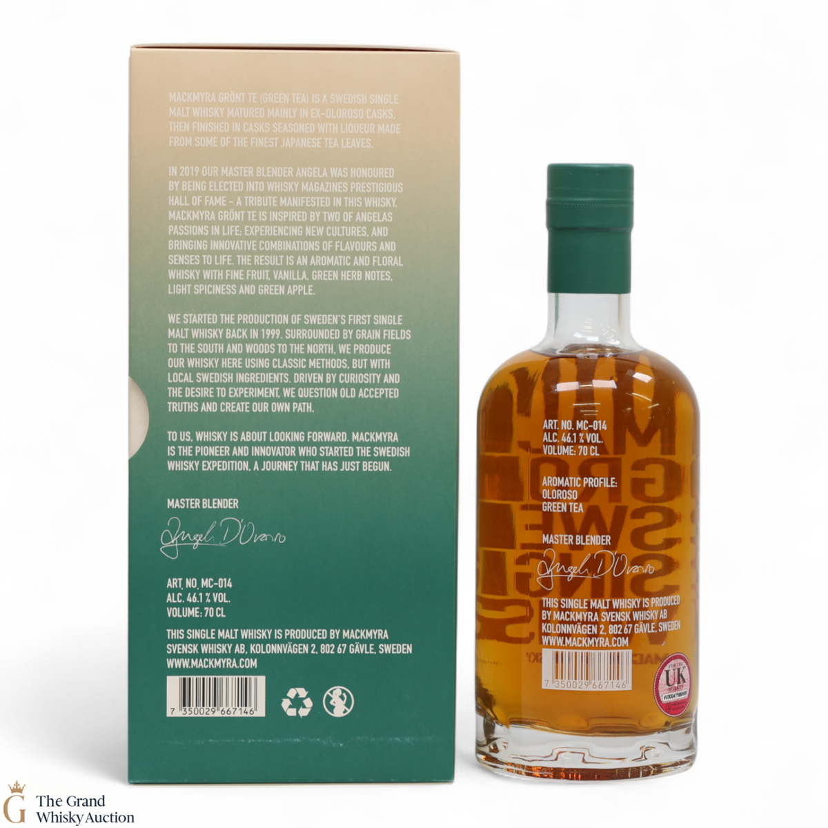 From Sweden's Mackmyra in collaboration with Japanese tea specialists Yuko Ono Sthlm. Grönt Te is a Swedish single malt finished in casks seasoned with a blend of Oloroso sherry and green tea leaves!
