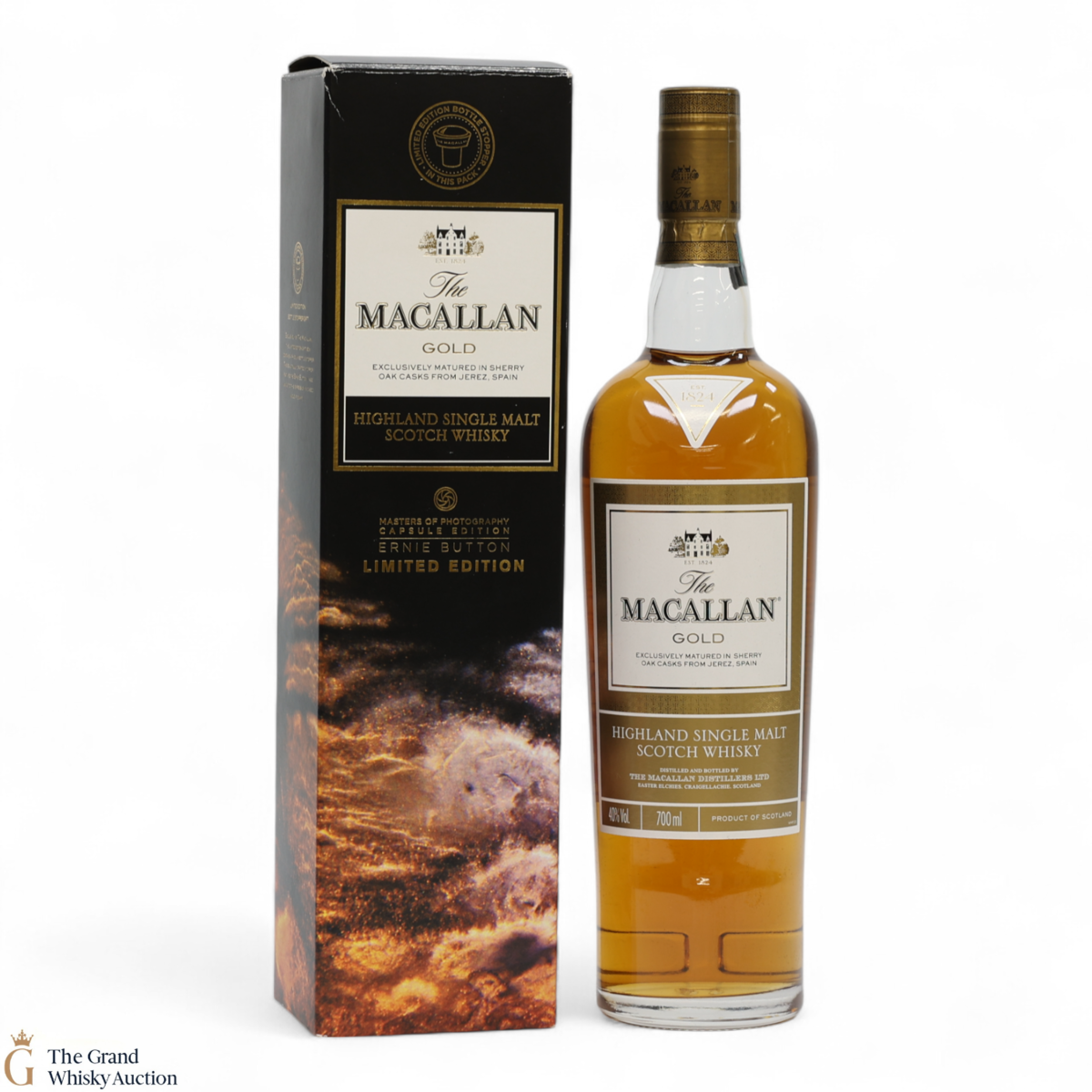 Macallan Gold in a beautiful presentation box complete with an Oak stopper. Ernie Button is a photographer who has started to work with Macallan a lot due to their similar nature in style.