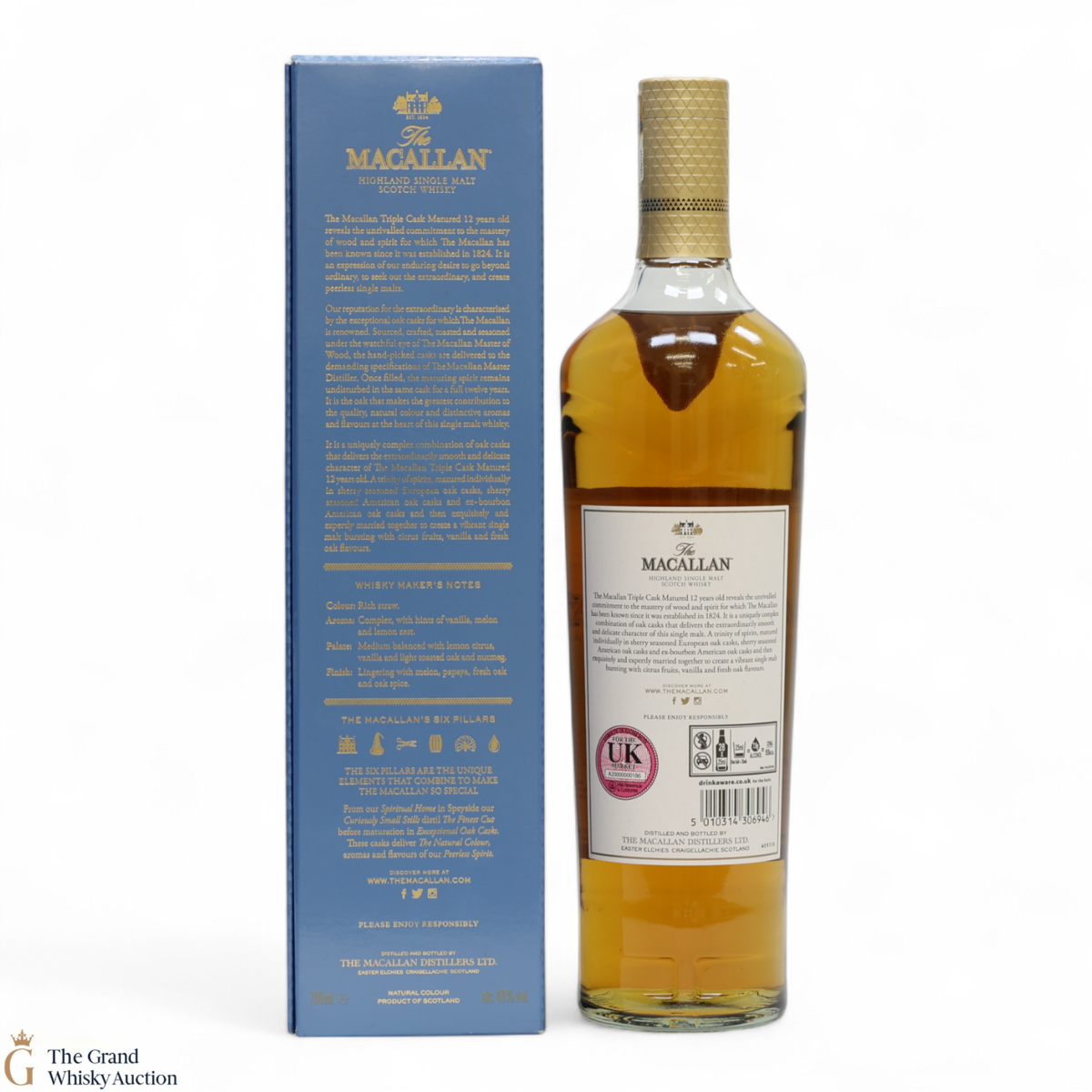 The 12 year old single malt was matured for 12 years and drawn from a combination of European sherry seasoned casks, American sherry seasoned casks and American ex-bourbon casks. It is part of Macallan's Triple Cask range which was launched in 2018, taking the place of the Fine Oak range.