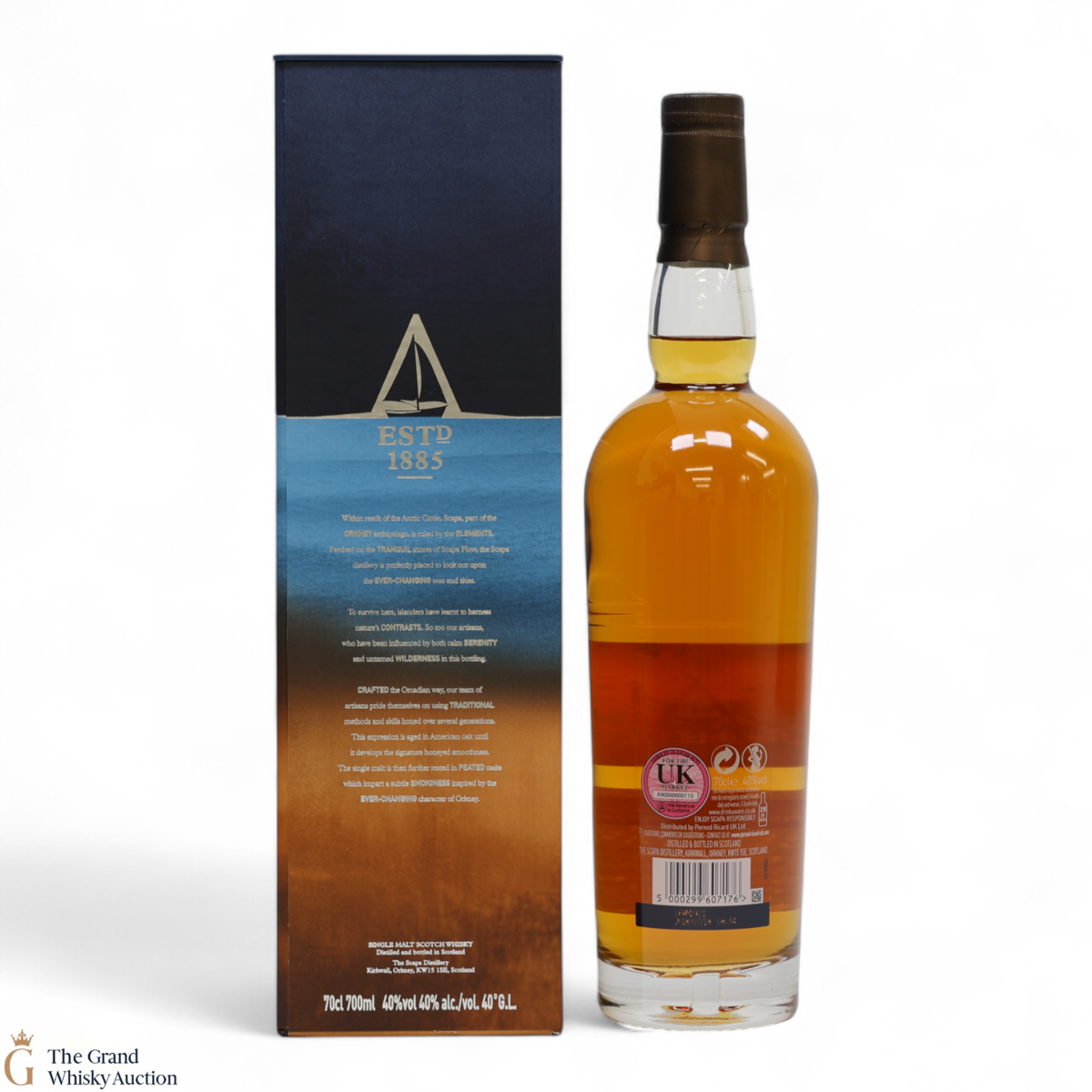 Scapa describes Glansa as a gentle introduction to the world of peated whisky. American oak cask matured Scapa single malt Scotch whisky finished in peated casks, to create a smoky finish on their signature smooth fruity malt.