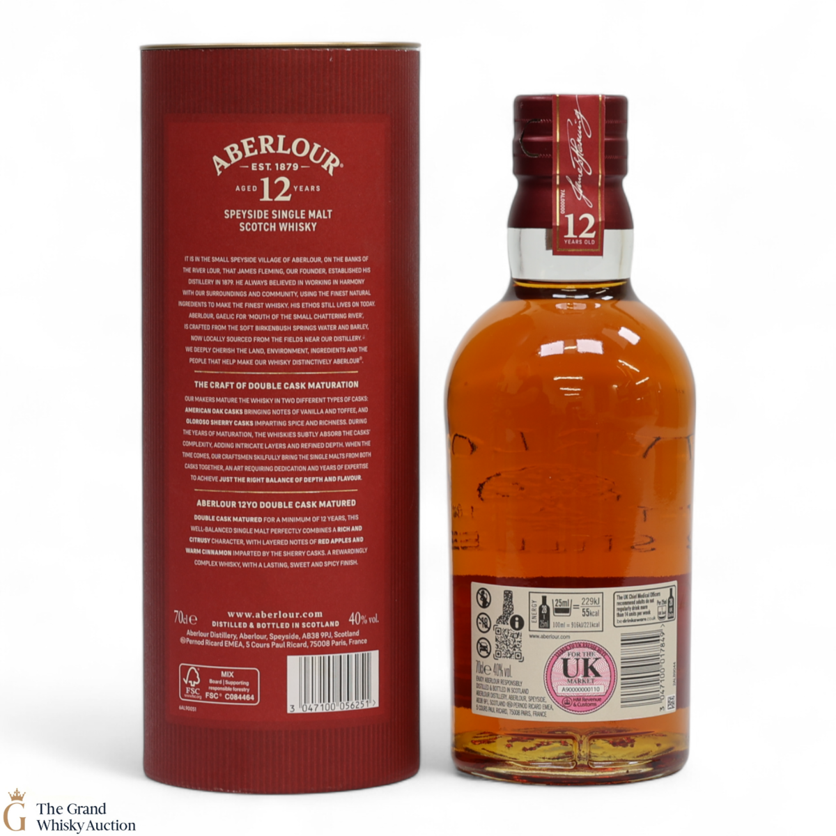 This Aberlour 12 Year Old, has been double cask matured in two handmade oak cask types. The double maturation of both traditional oak and sherry casks adds depth of character to this single malt, now bottled at 40% abv.