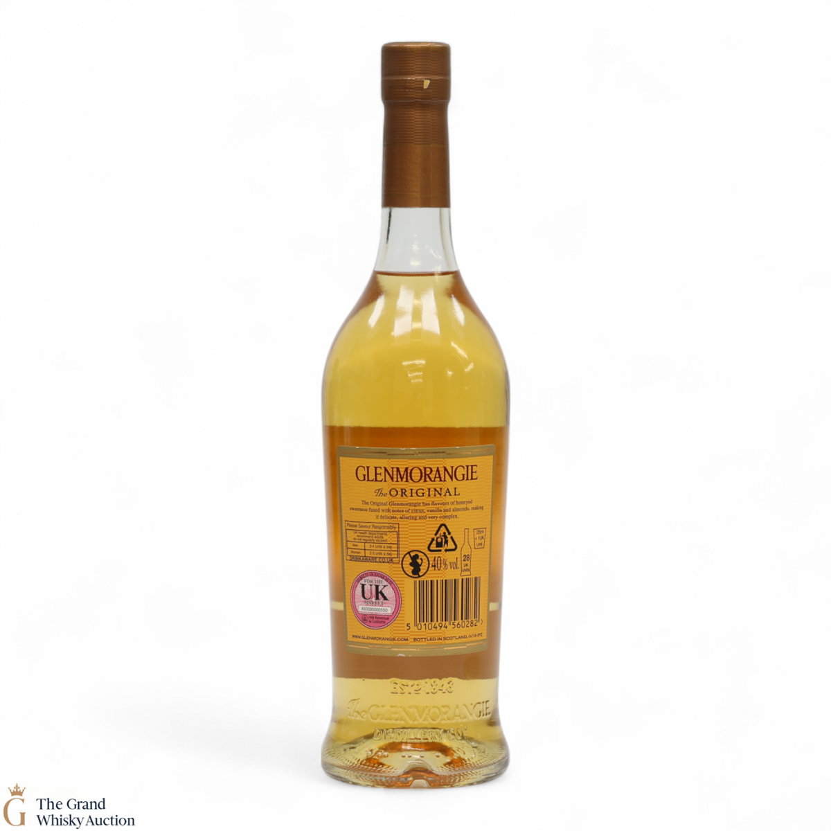 Due to the various ages of bottles and their seals, the condition of liquid is at the buyer's discretion and no claim can be lodged against failure/leakage in transit. Loss and breakage cover is available at 3% of the hammer price as standard. If the lot is not insured, no claim can be lodged against the courier or The Grand Whisky Auction for breakage or loss in transit.