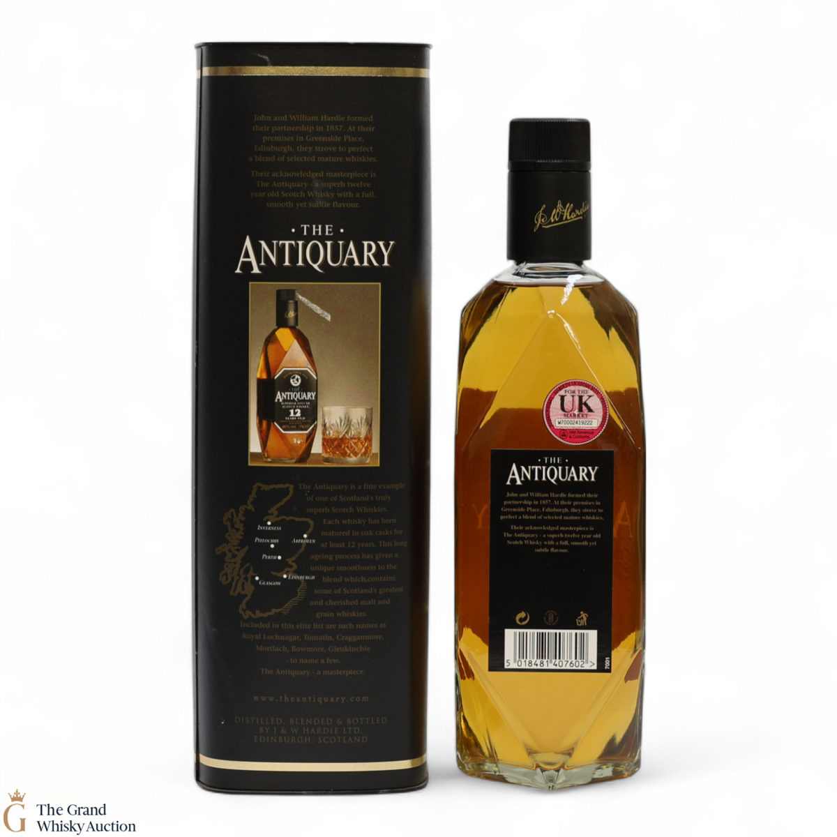 This bottling from Antiquary is a blend of some of Scotland's greatest 12-year-old malt and grain whiskies, including Royal Lochnagar, Tomatin, Cragganmore, Mortlach, Bowmore, Glenkinchie to name a few. Also, a quirky feature is that In the lid of this bottle box, there is a coaster that pops out!