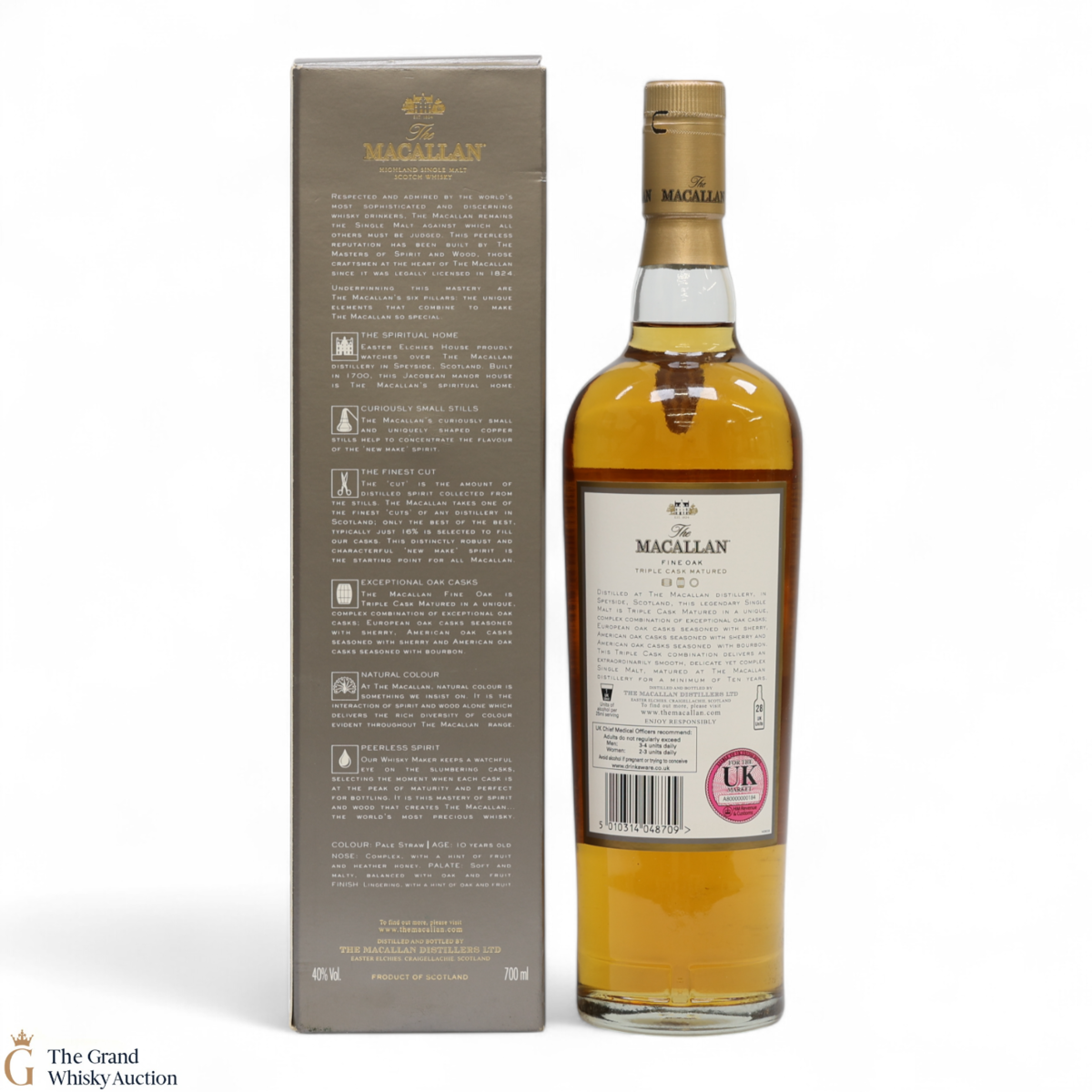 This 10 year old single malt is part of Macallan's Fine Oak, triple cask matured range. It has been matured for ten years in three oak cask types; Europen oak seasoned with sherry, American oak seasoned with sherry and American oak seasoned with bourbon. This bottling has been discontinued.