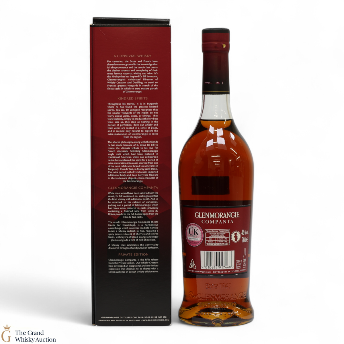 After first maturing in American white oak ex-bourbon barrels, the Companta was matured in 60% Burgundy wine casks from Clos de Tart and 40% Rhône Valley casks that previously held Rasteau, sourced by Glenmorangie's Director of Distilling, Dr. Bill Lumsden.