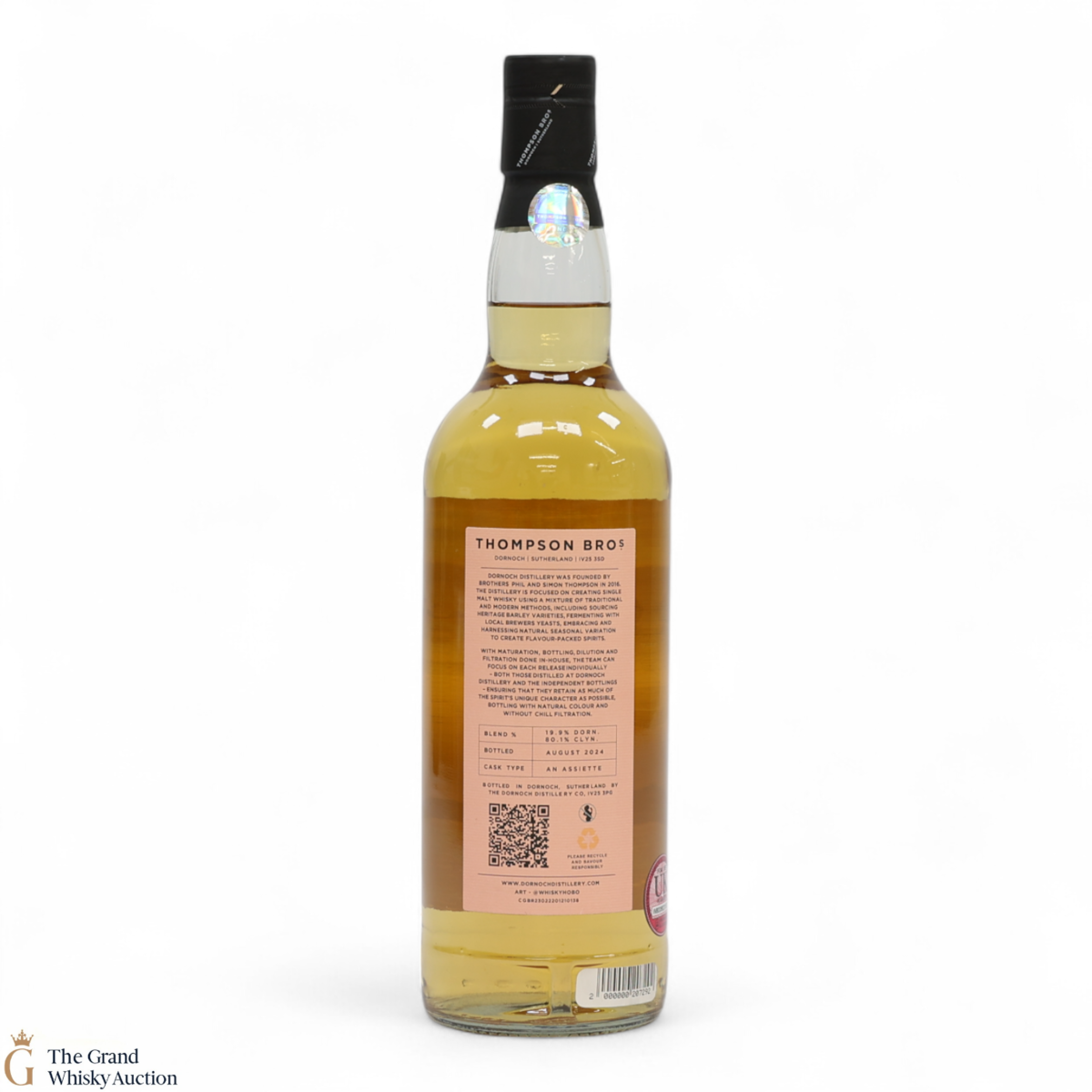 This blended malt whisky contains 80.1.% whisky from Clynelish and 19.9% from Dornoch distillery. It was bottled 6 years later in August 2024 by Thompson Brothers for the 2024 Whisky Show in London.