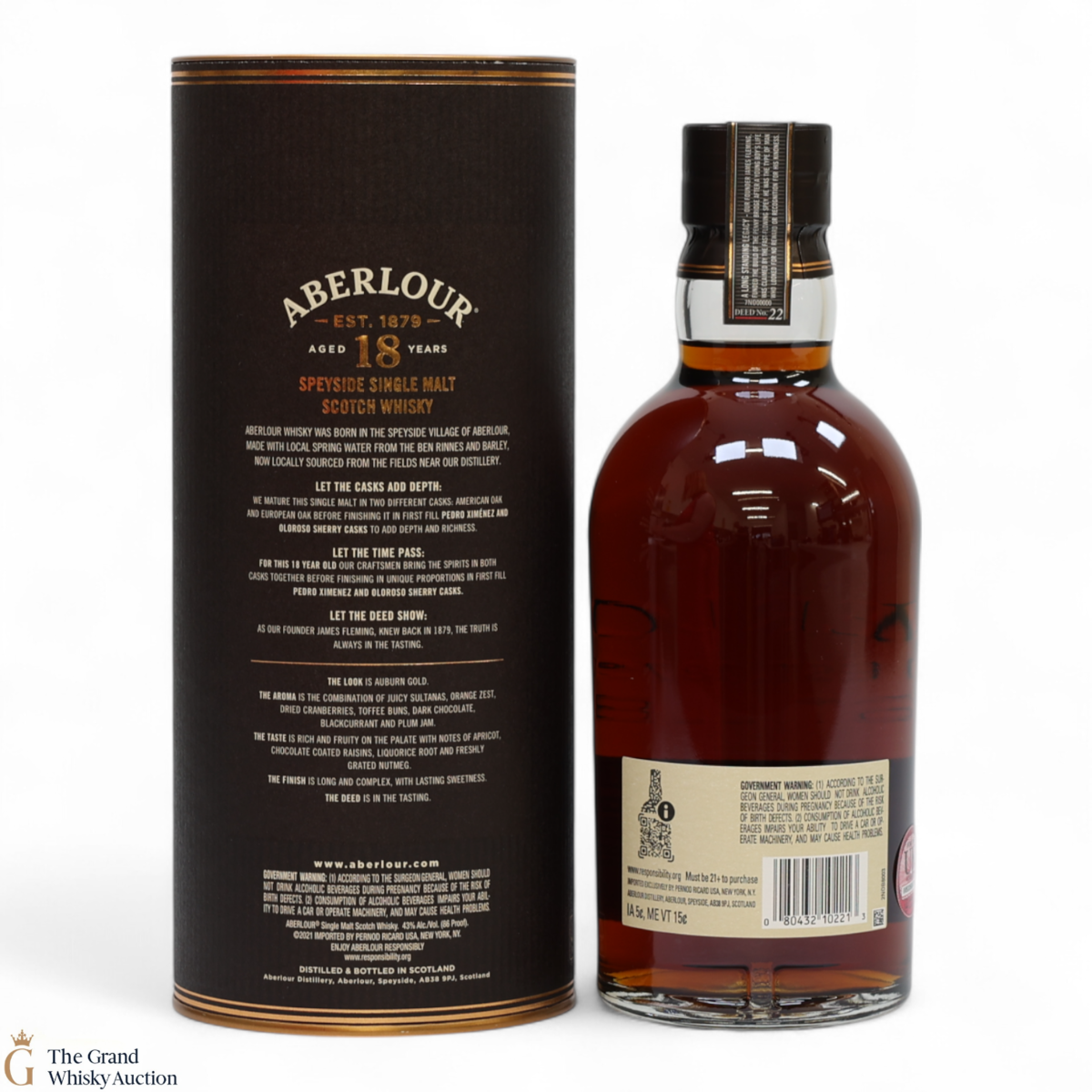 A bottle of Aberlour 18-Year-Old - described by the distillery as the 'perfect expression of our Founder's motto "Let The Deed Show".