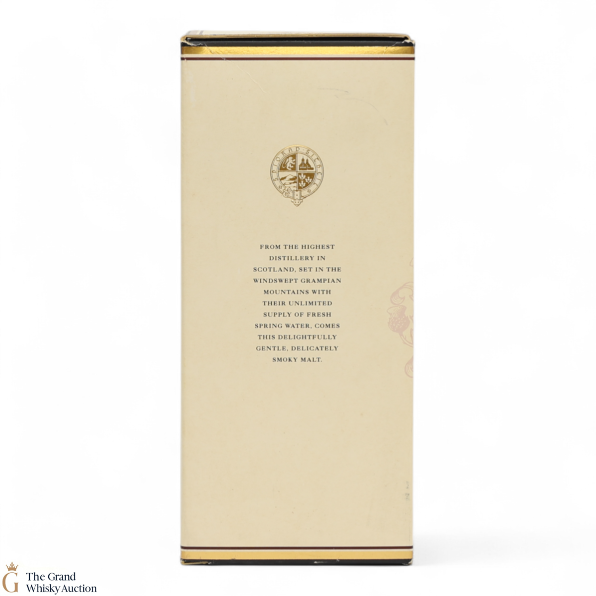 Due to the various ages of bottles and their seals, the condition of liquid is at the buyer's discretion and no claim can be lodged against failure/leakage in transit. Loss and breakage cover is available at 3% of the hammer price as standard. If the lot is not insured, no claim can be lodged against the courier or The Grand Whisky Auction for breakage or loss in transit.