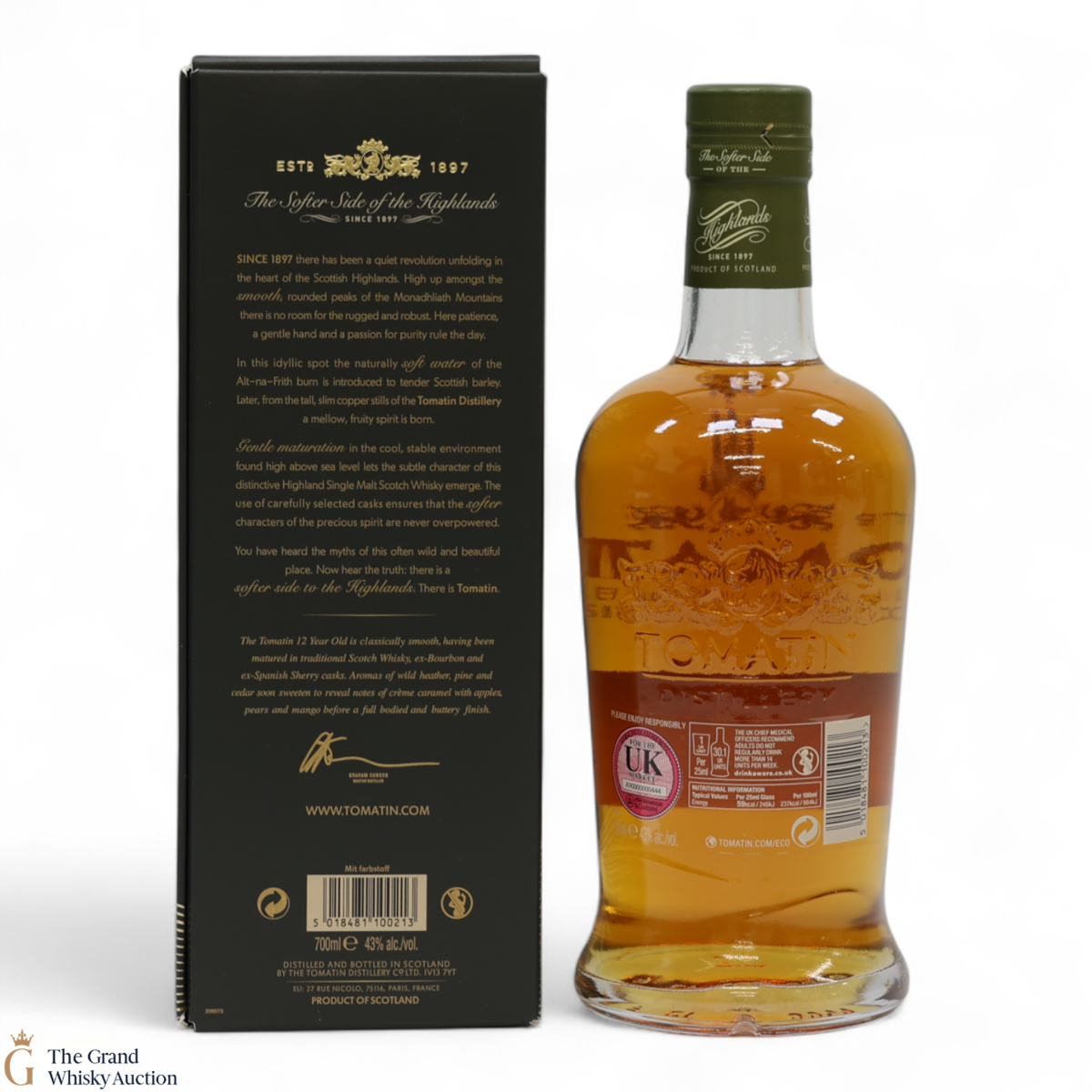 Due to the various ages of bottles and their seals, the condition of liquid is at the buyer's discretion and no claim can be lodged against failure/leakage in transit. Loss and breakage cover is available at 3% of the hammer price as standard. If the lot is not insured, no claim can be lodged against the courier or The Grand Whisky Auction for breakage or loss in transit.