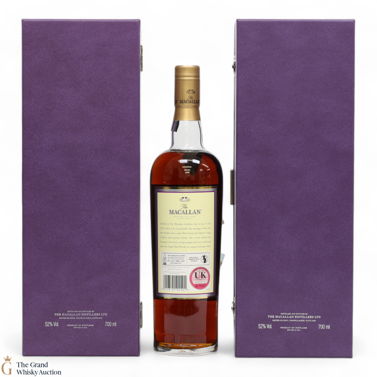 A highly desirable, limited-edition release from Macallan to commemorate the Golden Jubilee of Her Majesty Queen Elizabeth II (1952-2012). This is one of 2012 bottles. Drawn from its cask on the 8th of February 2012, by no coincidence the date of Her Majesty’s accession, this sherry cask-matured expression was bottled at 52% ABV. It is an instant classic and highly collectible.
