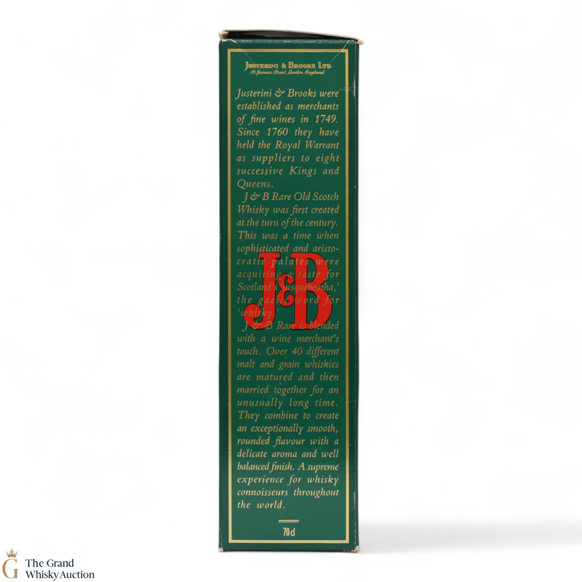 This bottle of Justerini and Brooks blended whisky. J&B Rare is so recognisable as they haven't changed the iconic bottle or label design much for decades!