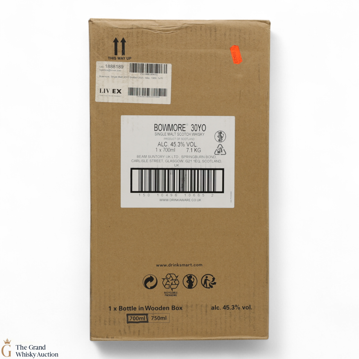 Due to the various ages of bottles and their seals, the condition of liquid is at the buyer's discretion and no claim can be lodged against failure/leakage in transit. Loss and breakage cover is available at 3% of the hammer price as standard. If the lot is not insured, no claim can be lodged against the courier or The Grand Whisky Auction for breakage or loss in transit.