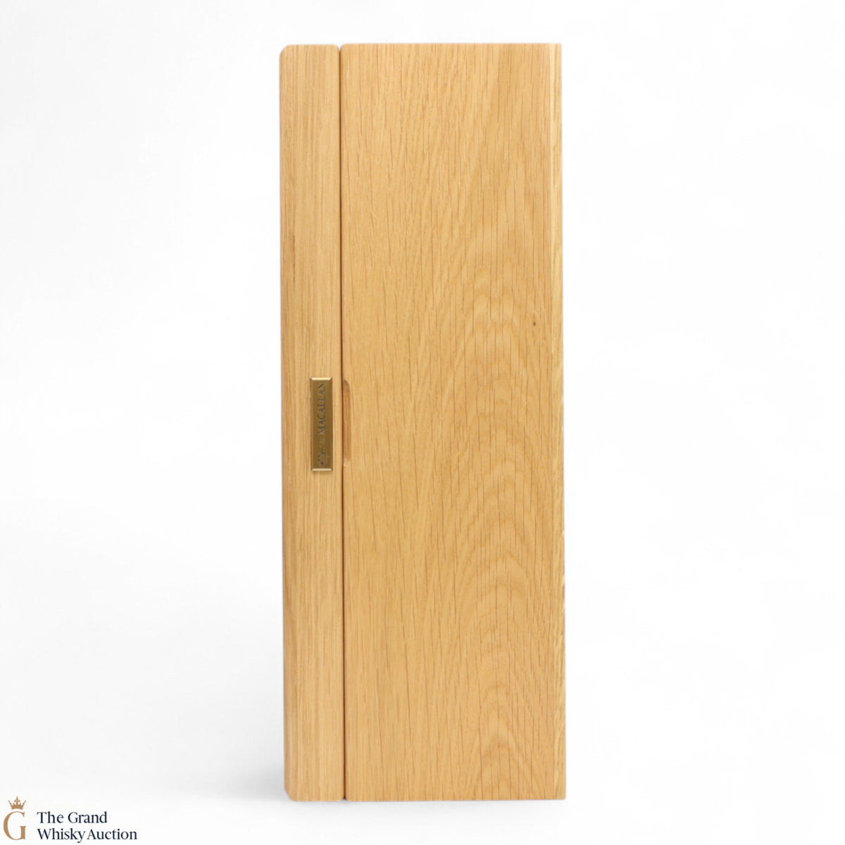 Each bottle in the collection comes in an oak presentation box lined with soft red Scottish leather, and a bespoke case is also available to house a trio of ongoing or limited-edition releases. Every bottle comes with a natural oak plinth which was previously a stave from a cask. Due to the plinths previous life as a whisky barrel you will see some minor imperfections, scratches, holes etc because it is a natural product.