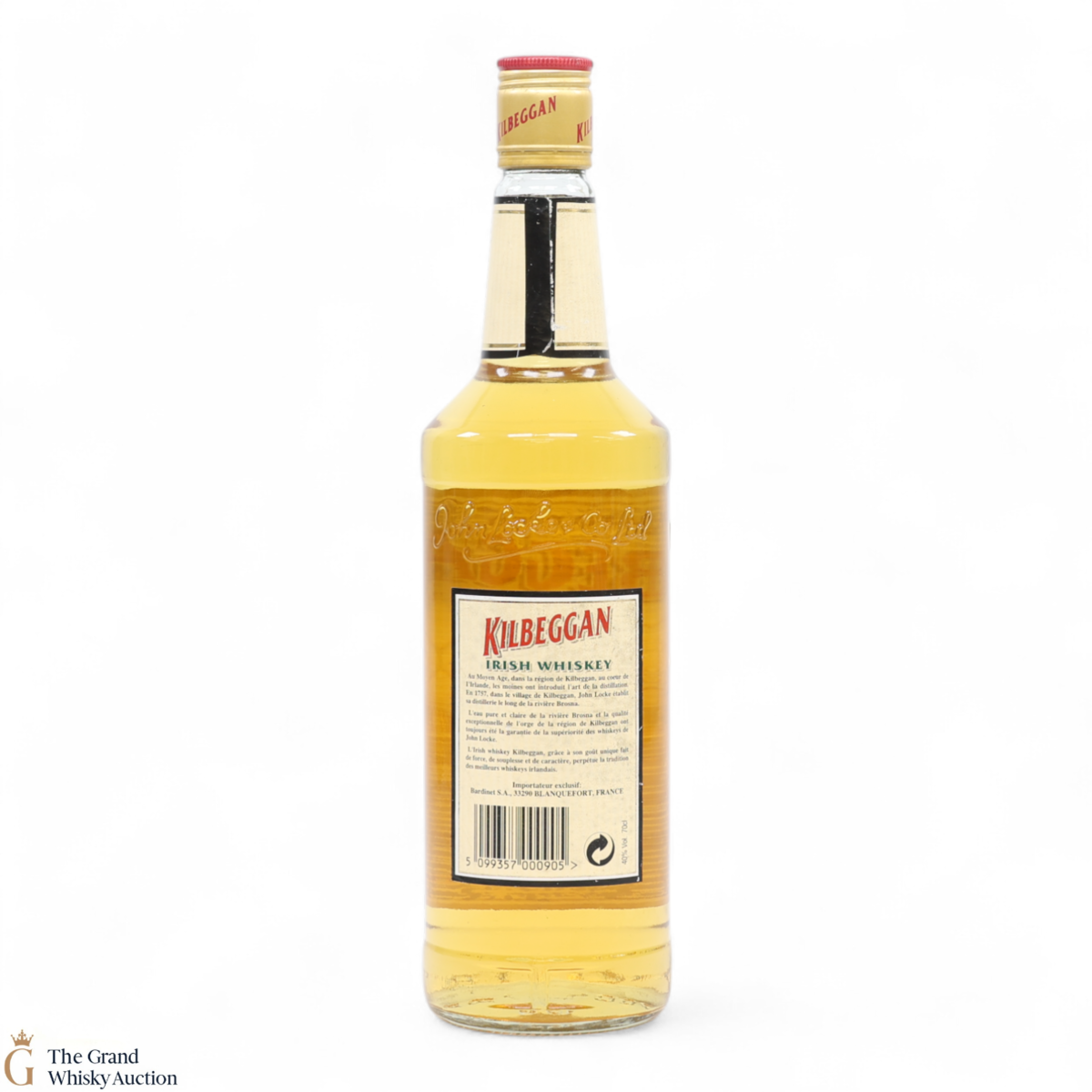 This 70cl bottling is an old presentation bottle of Kilbeggan Irish Whiskey. Kilbeggan is named after St Bécán, one of the Twelve Apostles of Ireland who founded a monastery in the area in the 6th century. Distilled, matured & bottled by John Locke & Co.