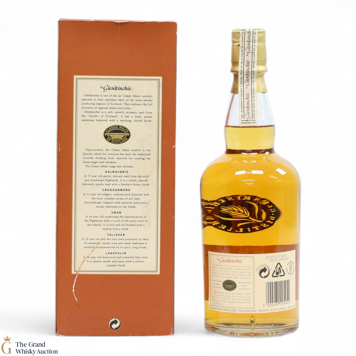 This 10-year-old is an older style bottling from Glenkinchie Distillery, that comes presented in the famous orange box - with the classic malt stamp on the front of the box. The Glenkinchie 10-year-old has since been replaced by the 12-year-old.