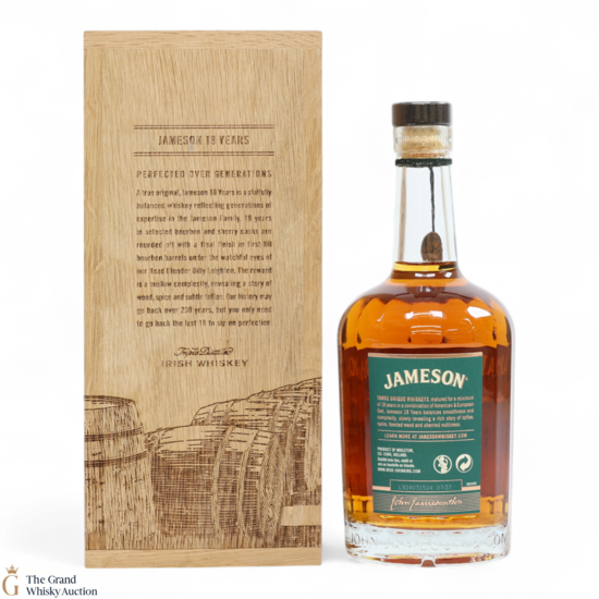 This well-presented 18-year-old Jameson was initially aged in ex-bourbon and ex-Oloroso sherry casks. It was then moved over to first-fill ex-bourbon barrels for a finishing period before bottling.