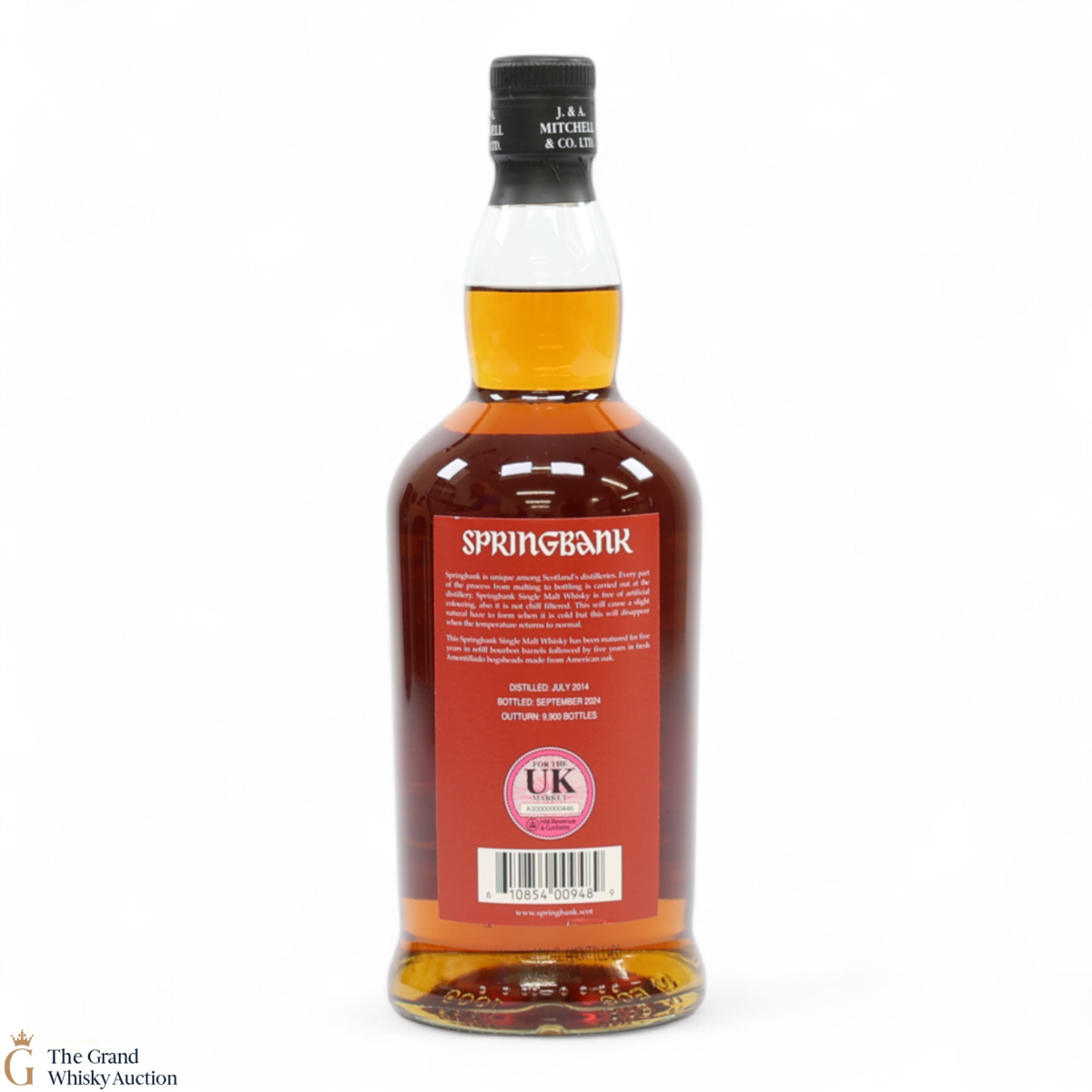 This Springbank Single Malt Whisky was distilled in July 2014 and has been matured for five years in refill bourbon barrels followed by four years in fresh amontillado hogsheads made from American oak. It was then bottled in September 2024 at a strength of 55% ABV with an outturn of 9,900 bottles.